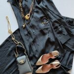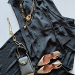 הסט באפור כהה שבחרנו כאן הוא אלגנטי ומינימליסטי עם נגיעות יוקרתיות. הצבע האפור הכהה הקלאסי יחד עם האקססוריז המוזהבים והתיק היוקרתי יוצרים מראה מתוחכם, בעוד הבד המקומט מעניק תחושה של סטייל מודרני ונינוח. הנעליים המוזהבות מוסיפות טוויסט זוהר ועדין למראה.