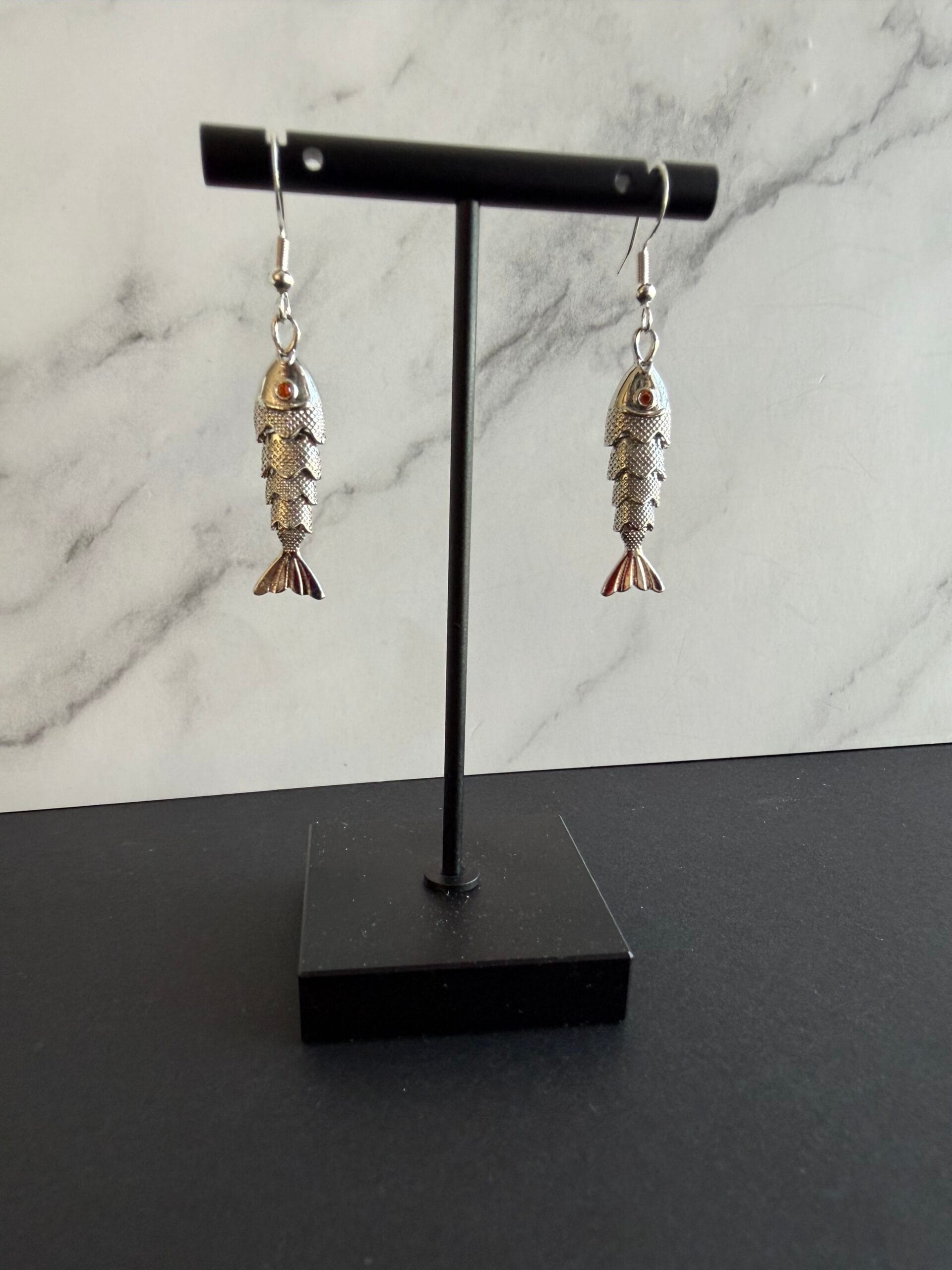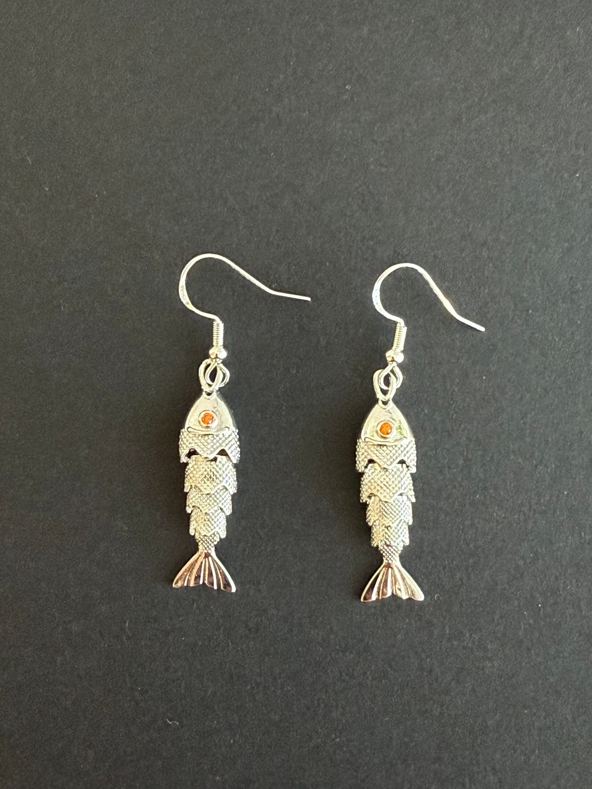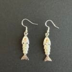 זוג עגילי כסף 925 עם תליון דג כסוף.