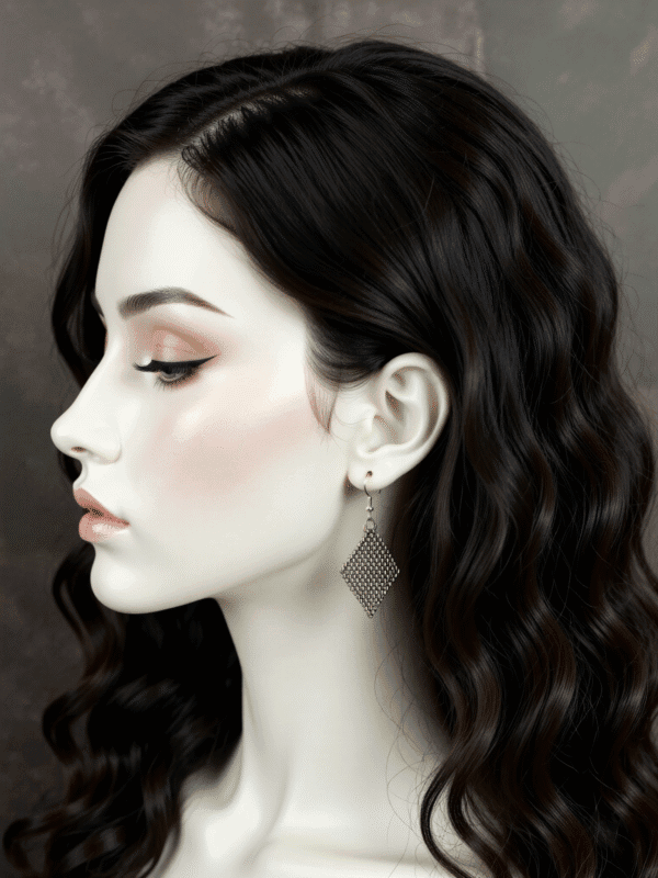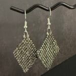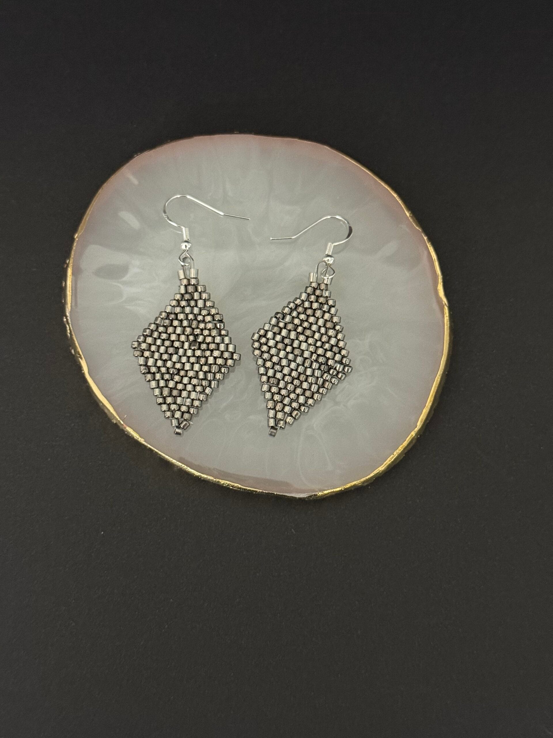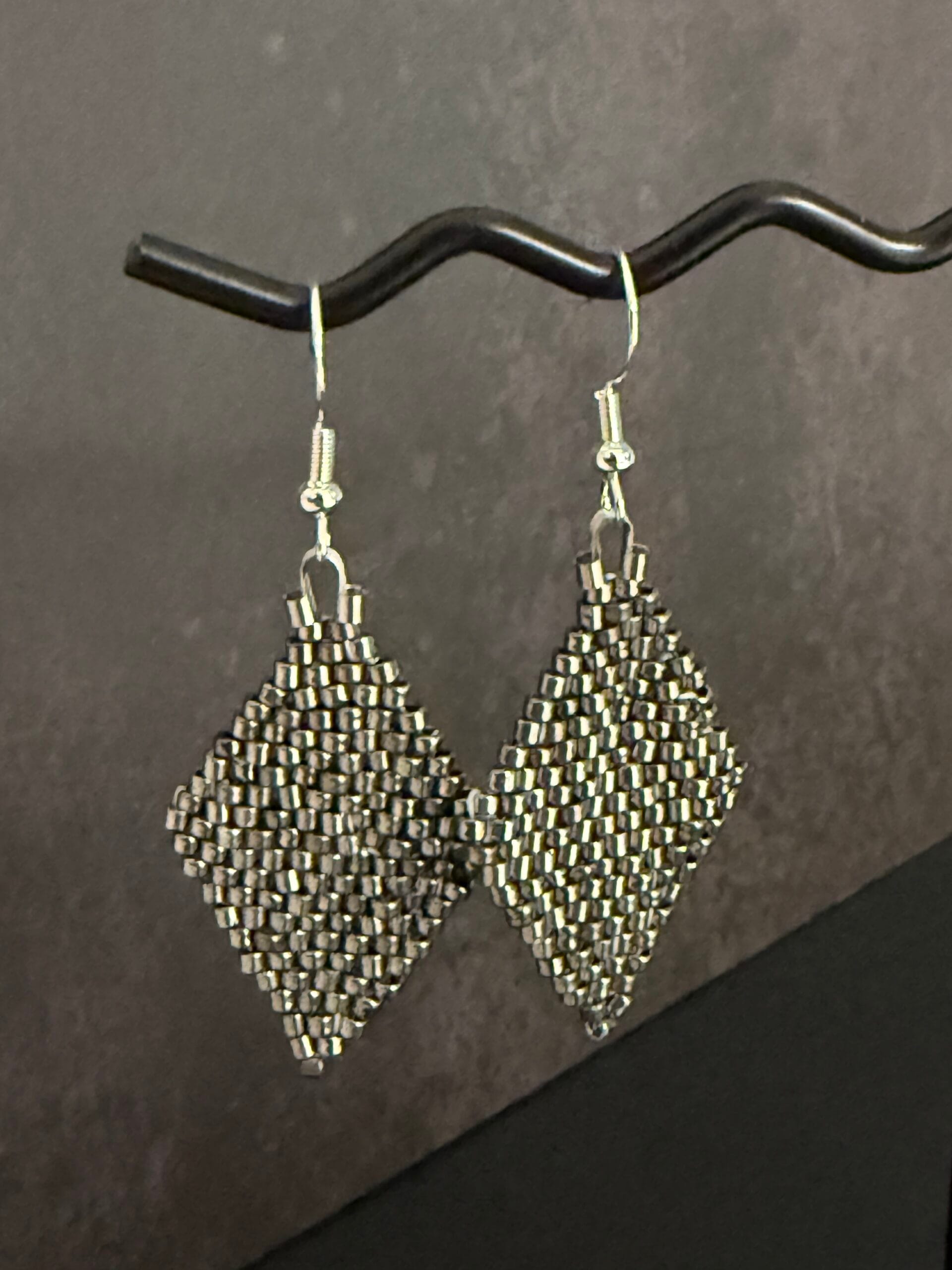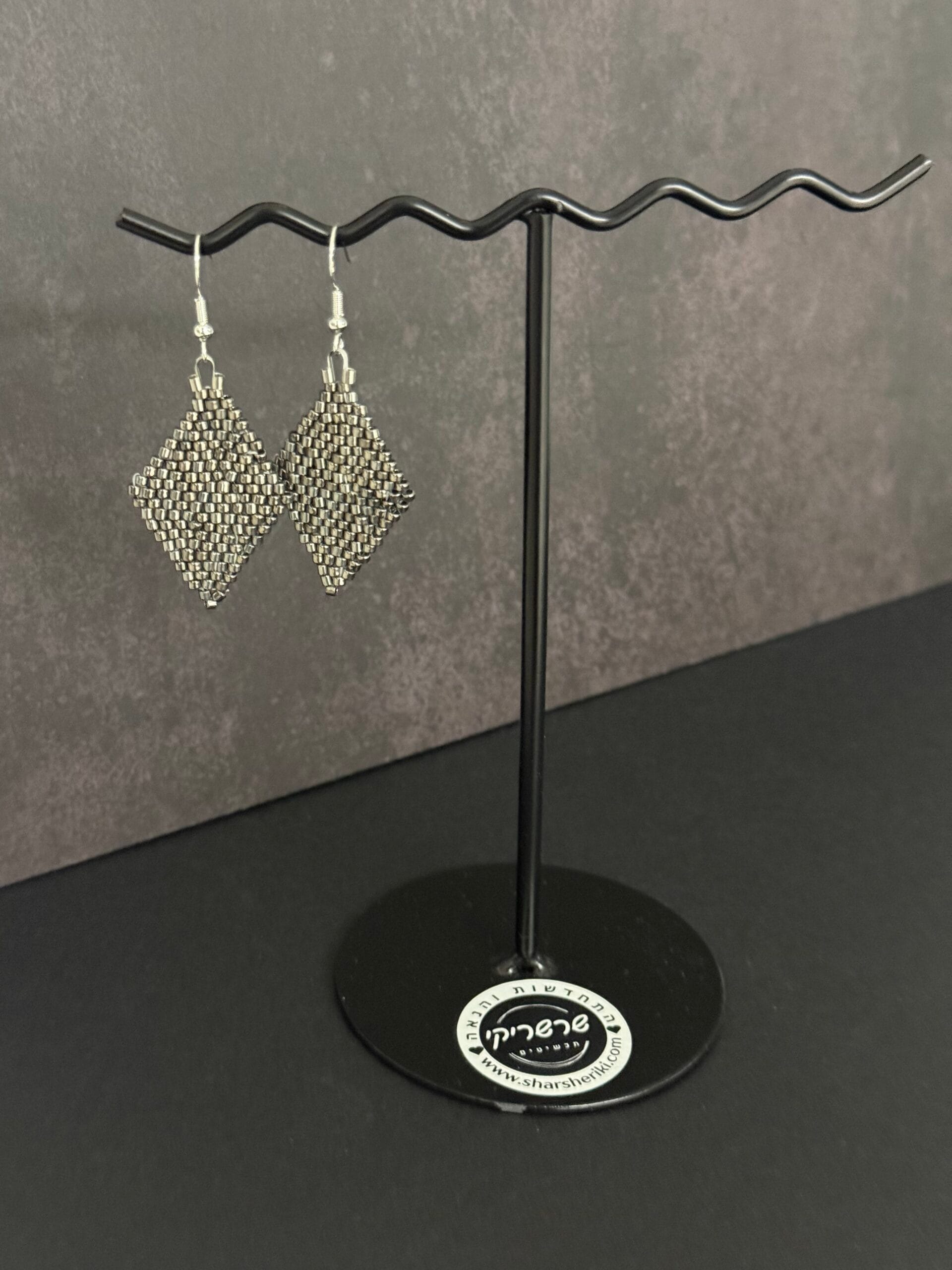 זוג עגילי בריק סטיץ׳ בגוון שחור מטאלי בצורת יהלום. העגילים עשויים בעבודת יד , השחלת חרוז אחר חרוז בטכניקה מיוחדת , הם קלילים ונוחים לשימוש .