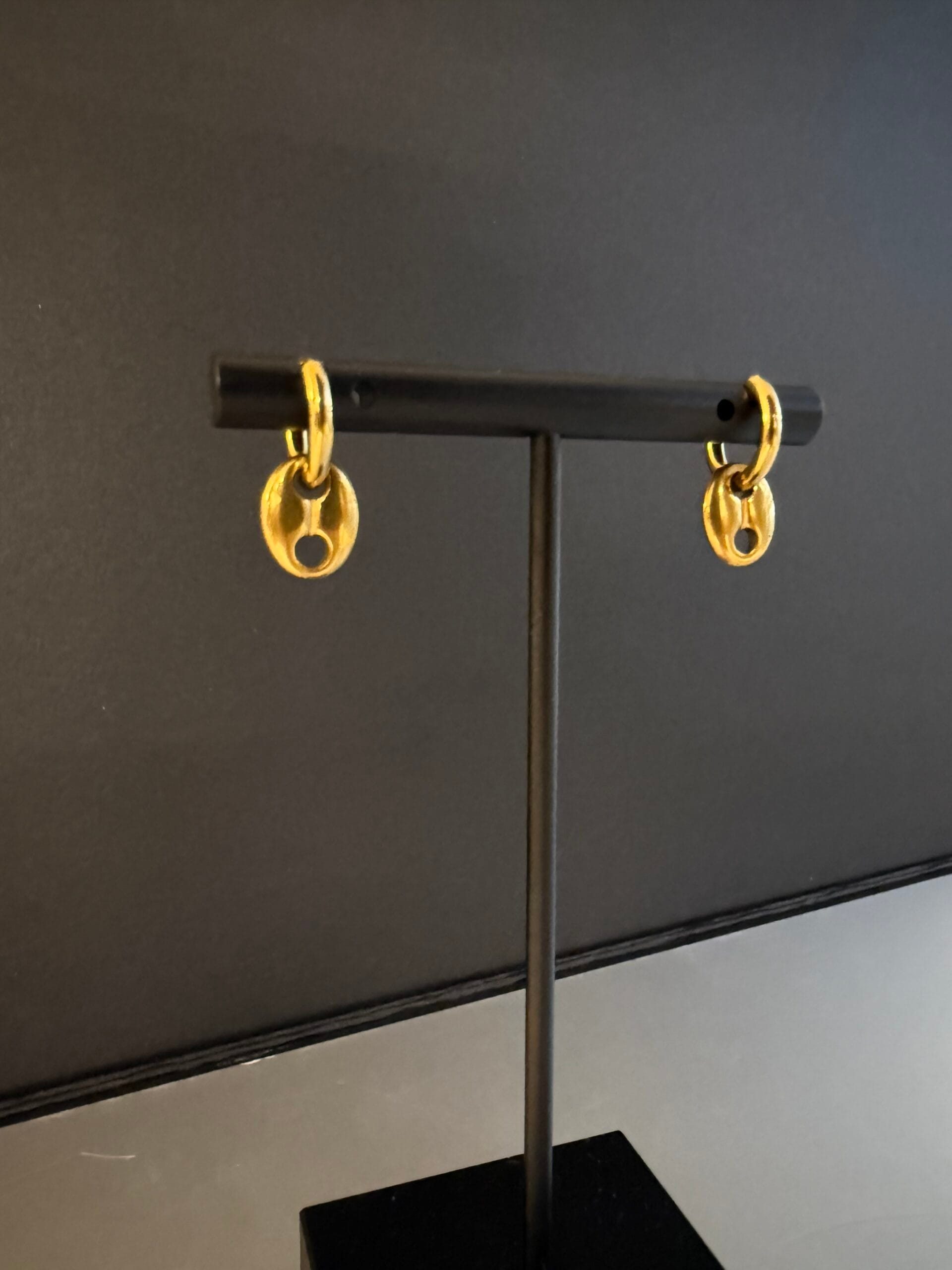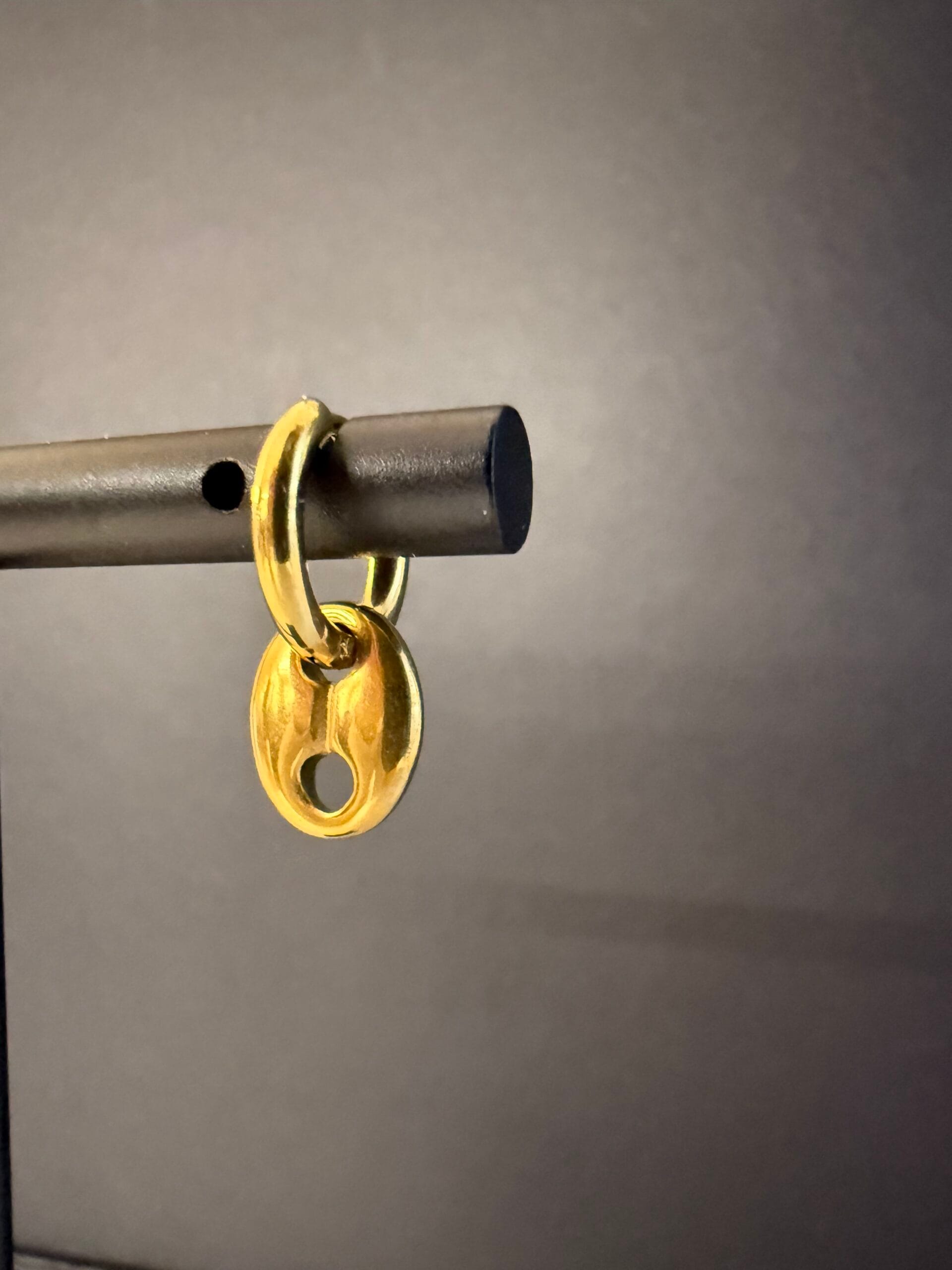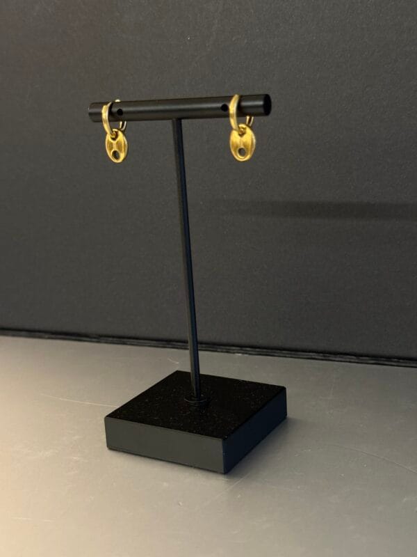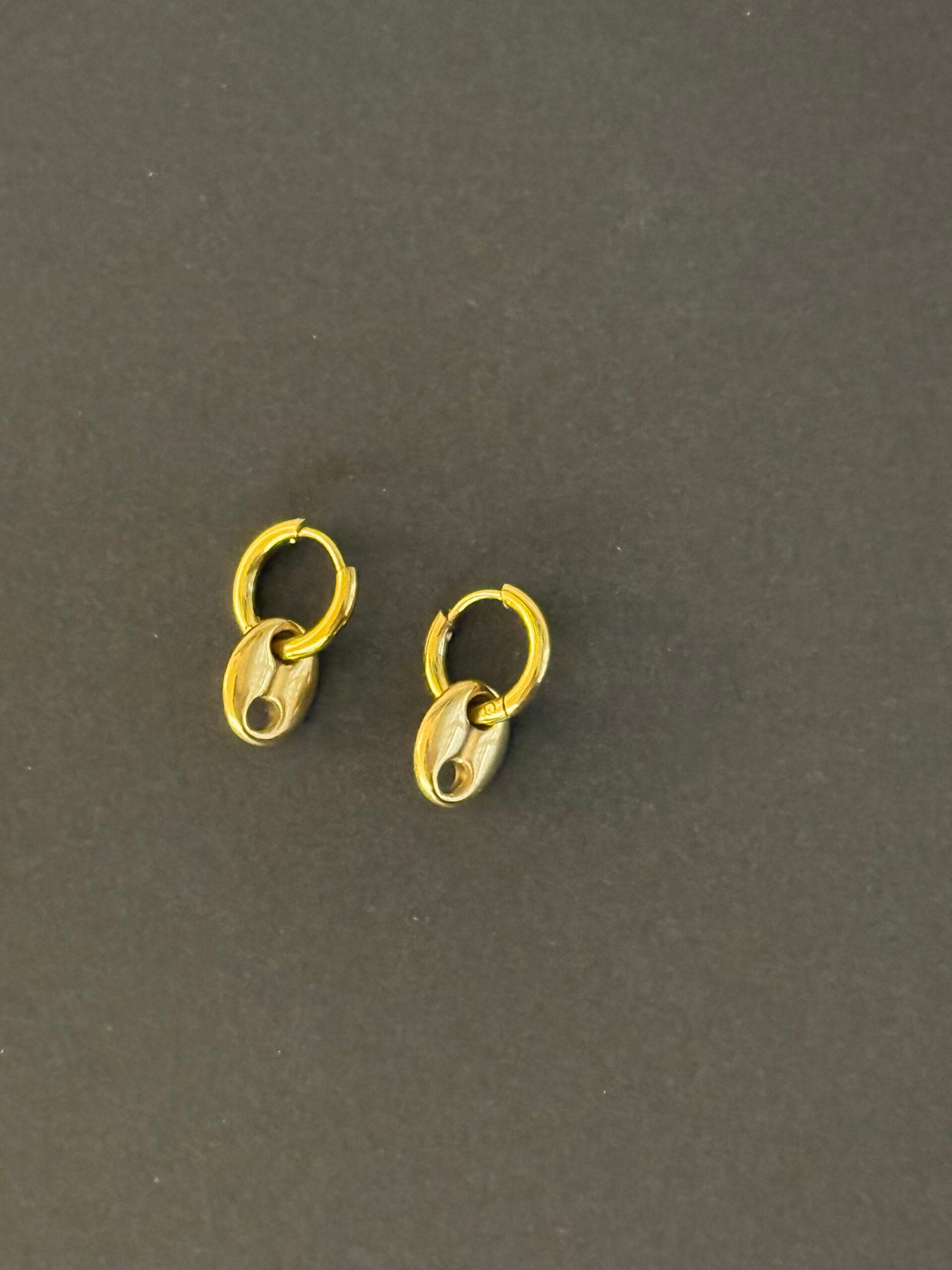זוג עגילי חישוק מעוצבים בגימור יוקרתי, הכוללים תליון חולייה בעיצוב ימי קלאסי
