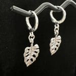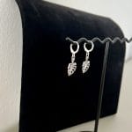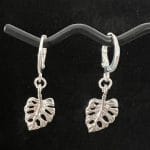 זוג עיגילי חישוק כסף אמיתי 925 עם תליון עלה.