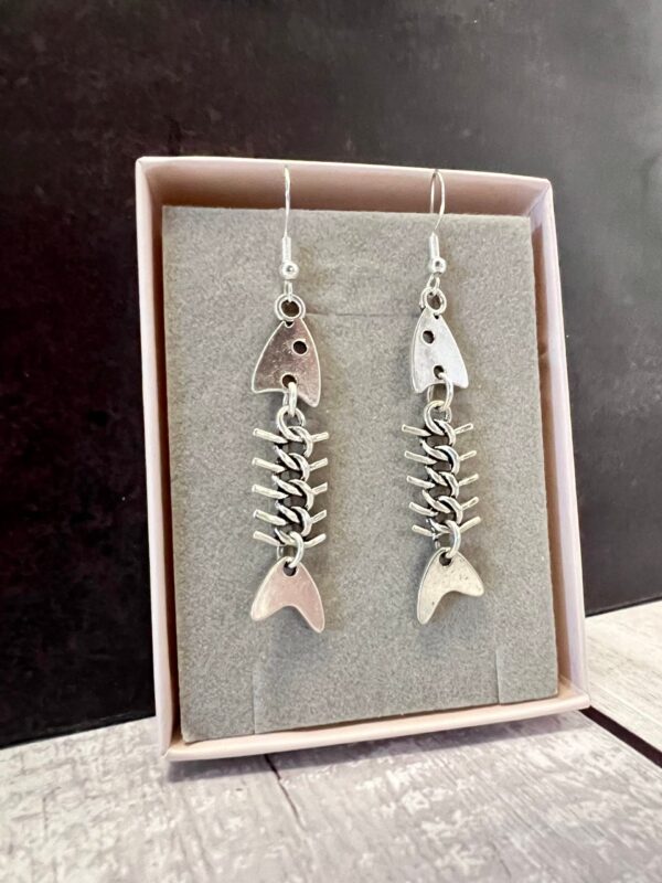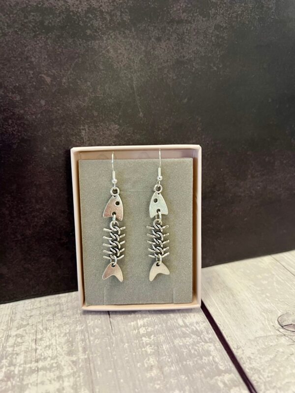 זוג עגילי שלד דג מיוחדים וקלילים.