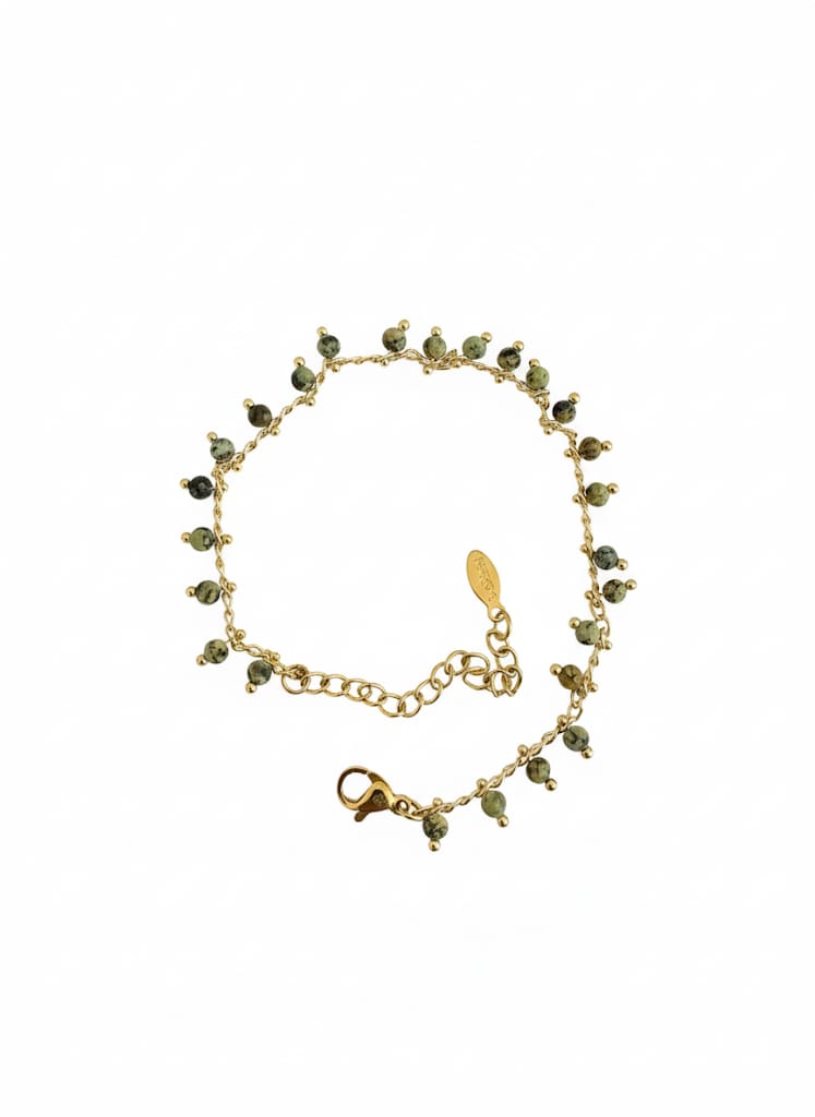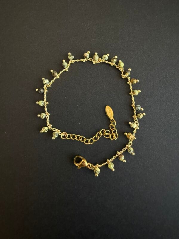 צמיד עדין שזור באבני חן קטנות לאורך הצמיד המוזהב.
