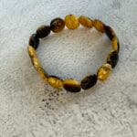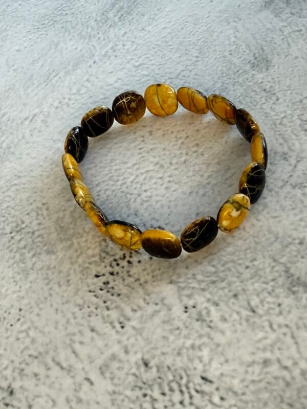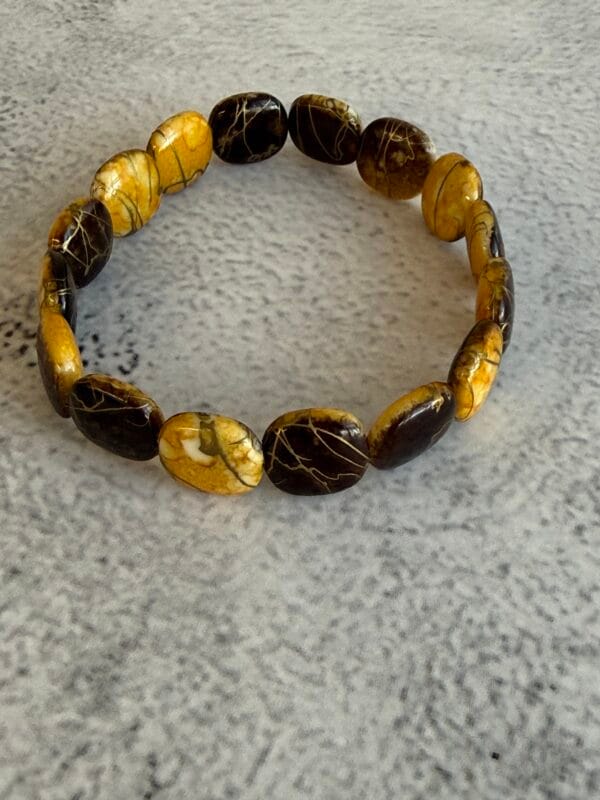 צמיד גמיש חרוזים שטוחים חום וצהוב