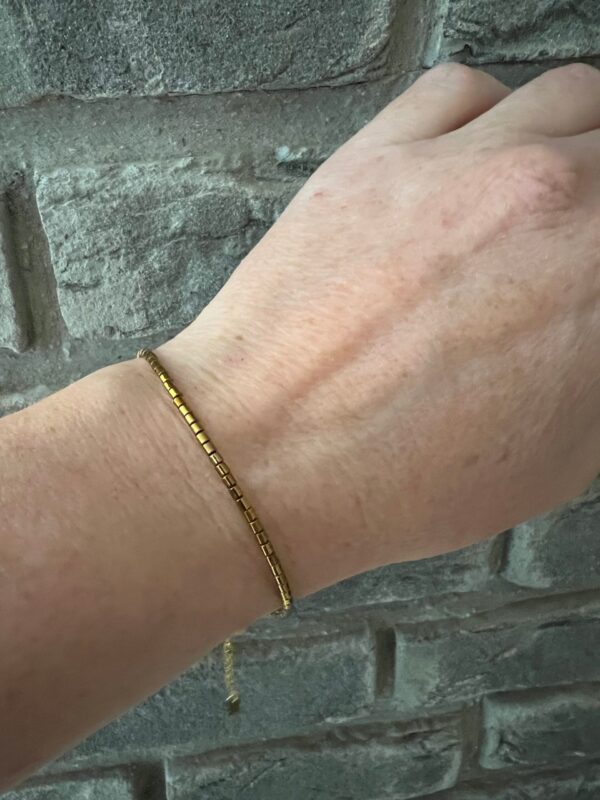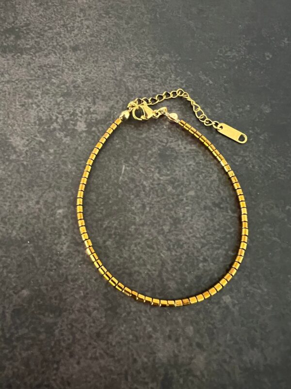 צמיד עשוי חרוזי המטייט מוזהבים עדין ושיקי.
