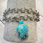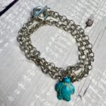 צמיד לולאות שני ליפופים שהוא גם צ'וקר לצוואר עם תליון צב וסוגר נוח לשימוש .