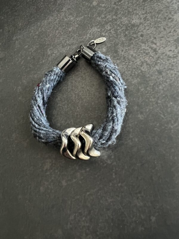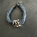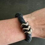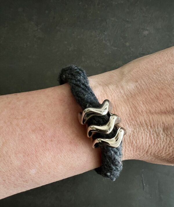 צמיד עשוי מחבל רך ונעים למגע, בגוון אפור כהה בשילוב אלמט כסוף .