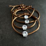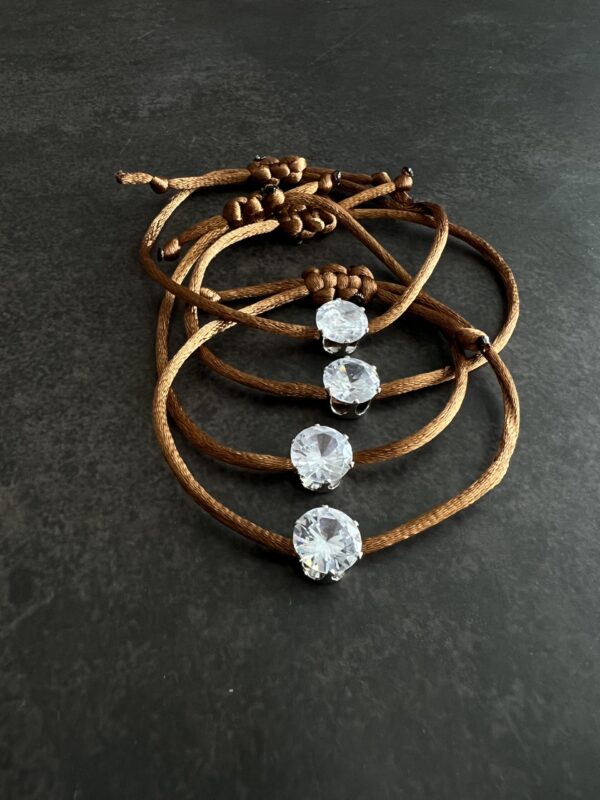 צמיד עשוי חוט סאטן בצבע חום עם חרוז זירקון .