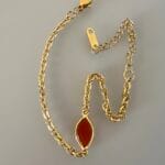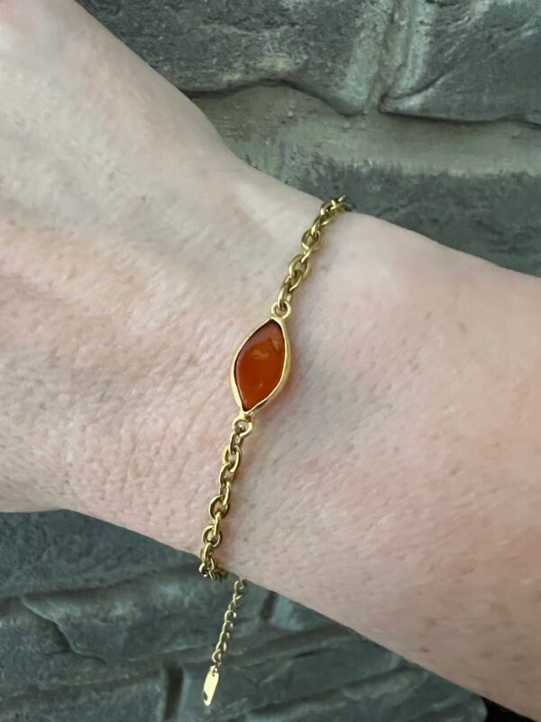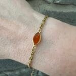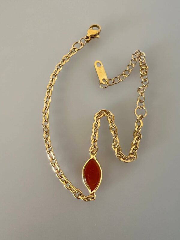 צמיד עדין עשוי לולאות מוזהבות אל חלד מצופה זהב 18K עם תליון דמוי עלה בכתום .