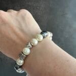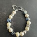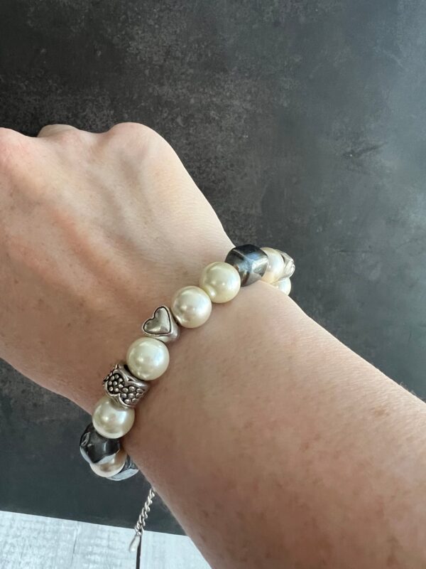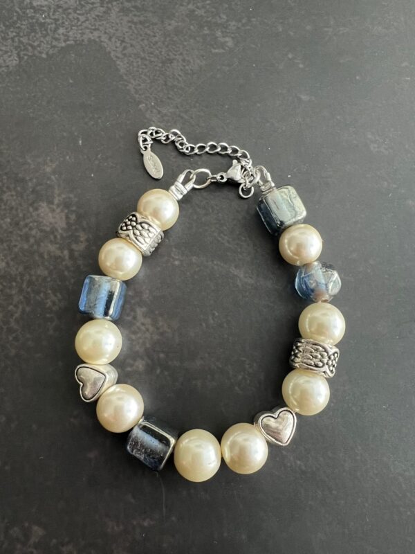 צמיד חרוזי פנינה, חרוזי זכוכית וחרוזי לבבות מתכת .