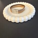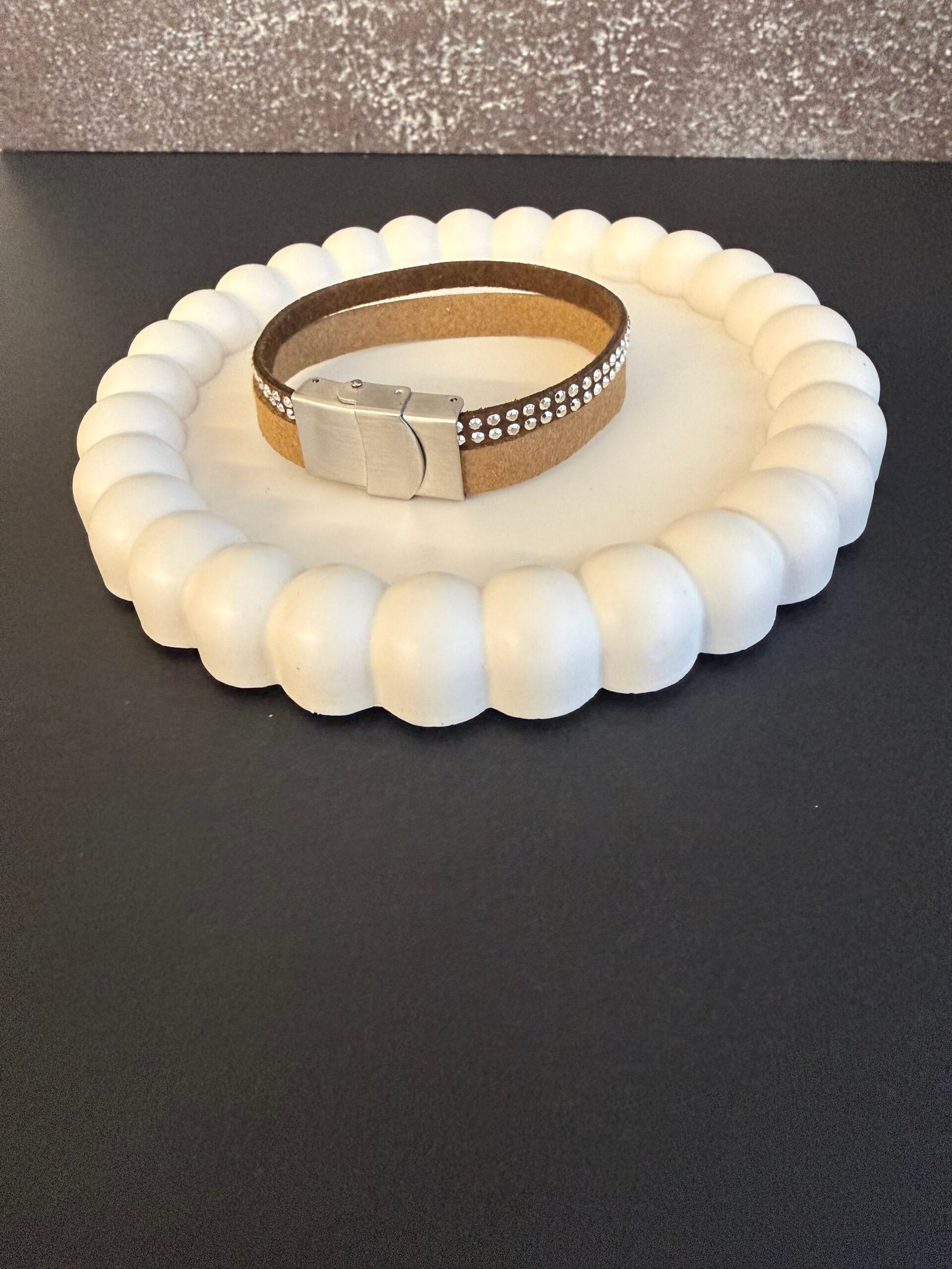 צמיד יוניסקס עור רחב בשתי שכבות בצבע חום עם ניטים כסופים וחום חלק.