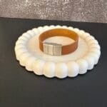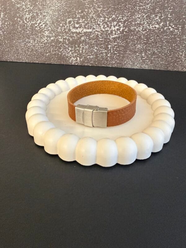 צמיד יוניסקס עור רחב בצבע חום.