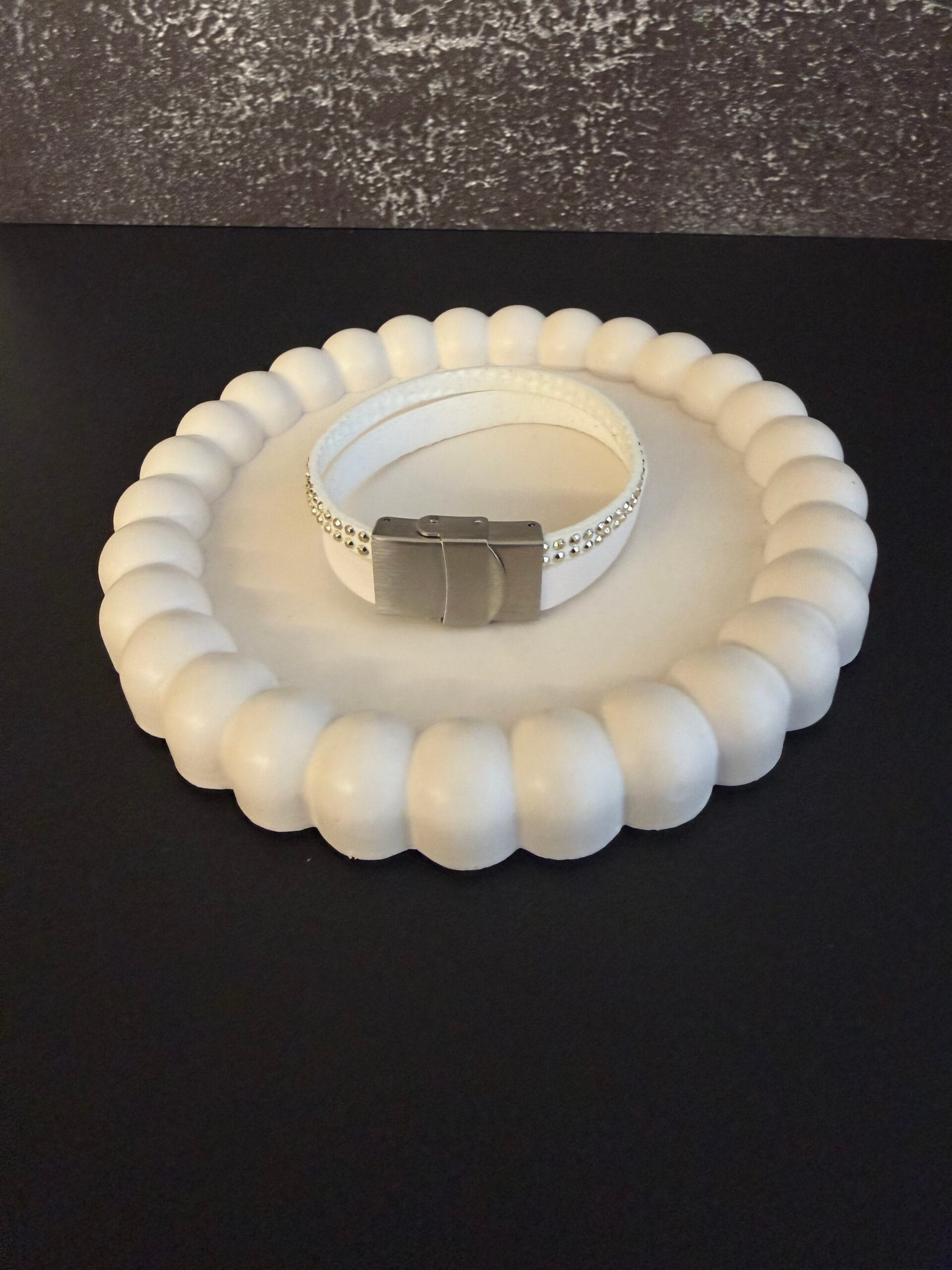 צמיד יוניסקס עור רך רחב בשתי שכבות לבן ולבן עם ניטים.