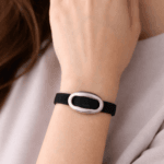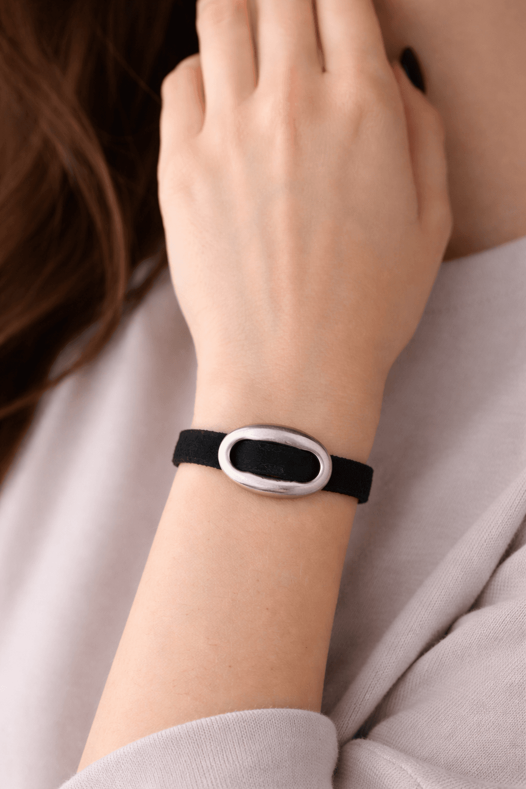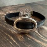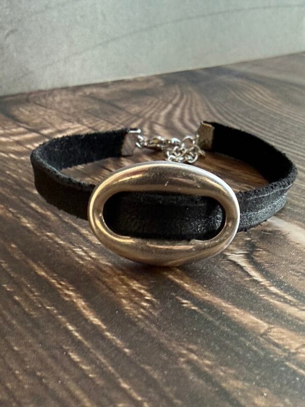 צמיד עור זמש, שחור עם אלמנט חוליית העוגן.