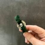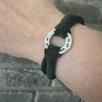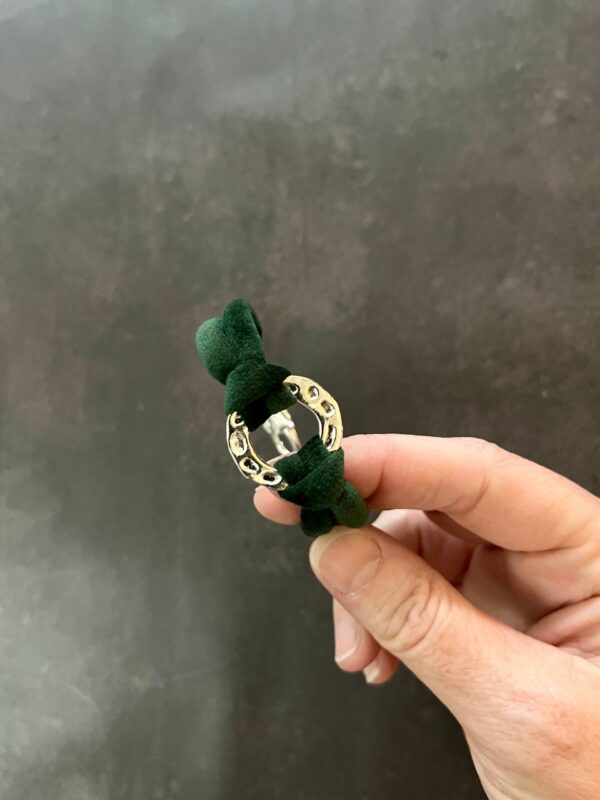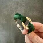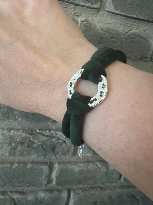צמיד עשוי חבל קטיפה בגוון ירוק כהה עם אלמנט כסוף שיקי.