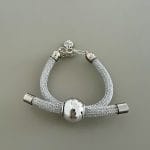 צמיד אלגנטי עשוי מחבל בגוון כסוף עם אלמנט מרכזי חרוז גדול.