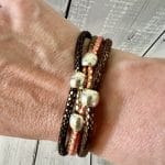 צמיד חבלים 4 שכבות שזור חרוזים כסופים.