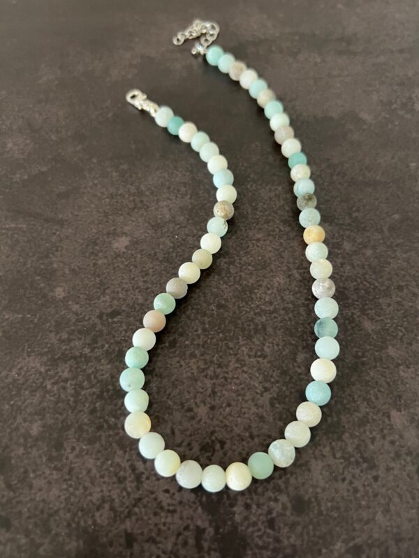 צ׳וקר חרוזי אמזונייט בגימור מט, קוטר כל חרוז 6 מ״מ.
