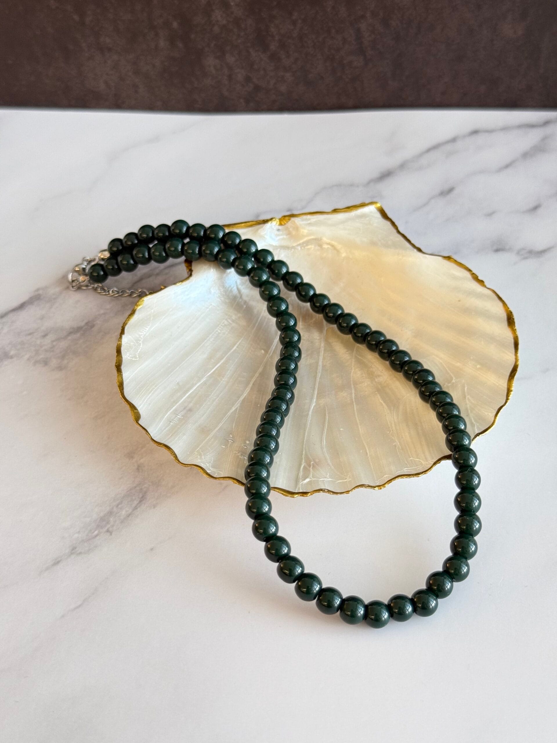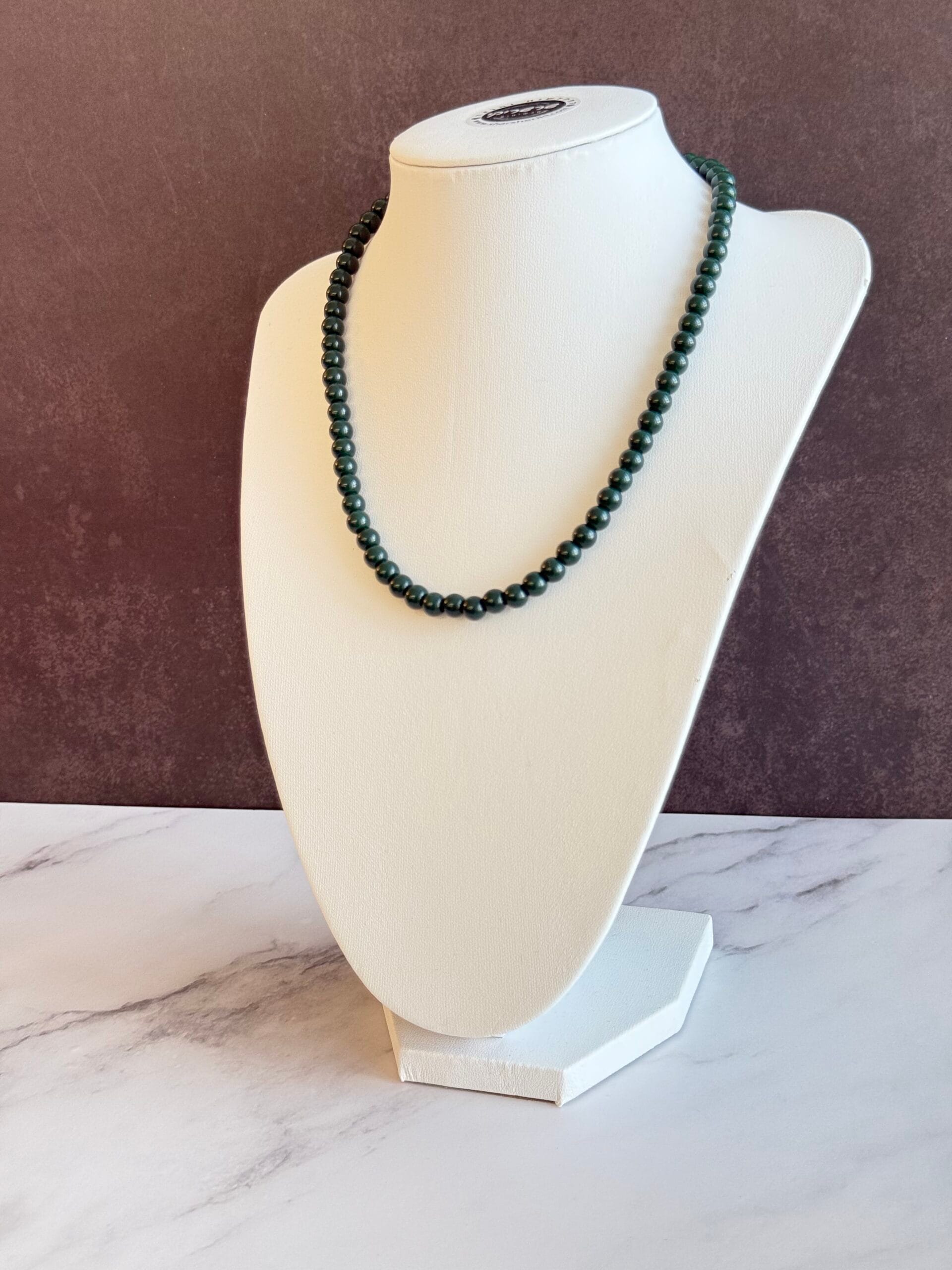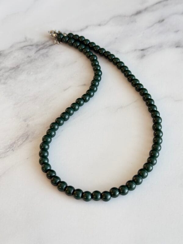 שרשרת קצרה צ׳וקר עשויה חרוזי זכוכית בירוק כהה .