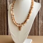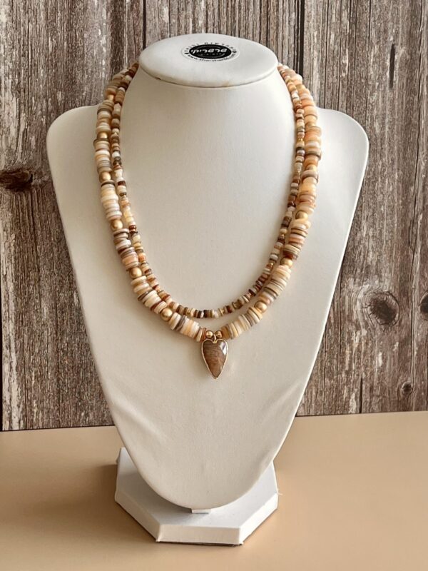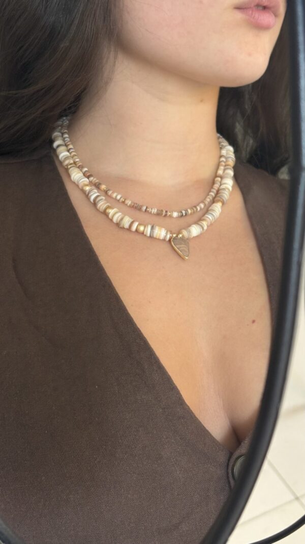 ✔ שתי שרשראות חרוזים שטוחים בטקסטורה טבעית ומגוונת בגוני בז’, חום וזהב