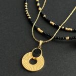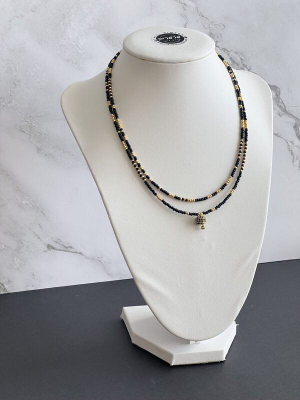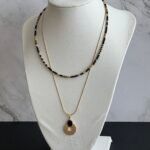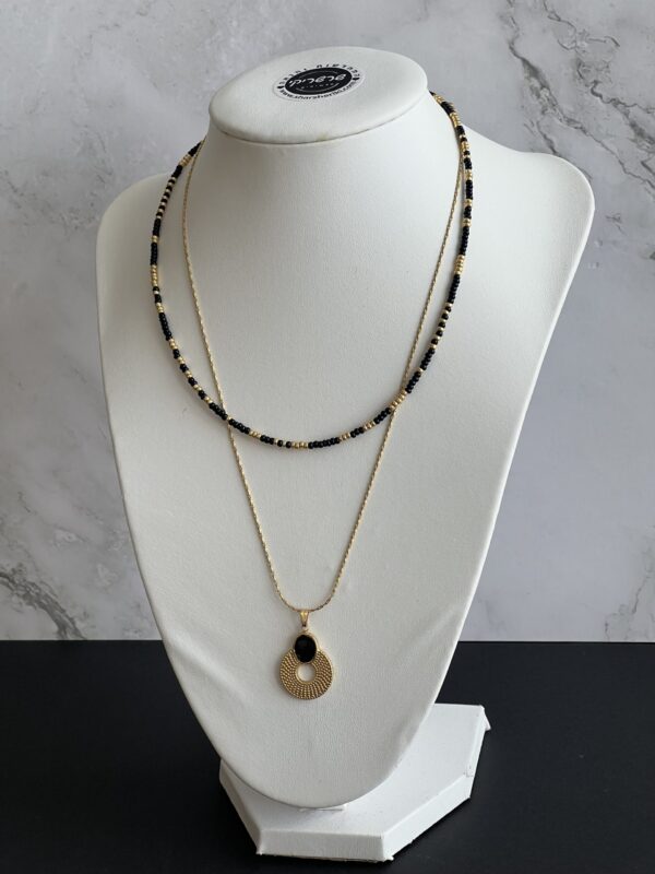 * חומרים איכותיים: השרשראות עשויות מחומרים נבחרים המבטיחים עמידות לאורך זמן וברק שלא נשחק. החרוזים השחורים המשולבים בשרשראות העליונות מוסיפים טקסטורה עשירה ועניין ויזואלי.