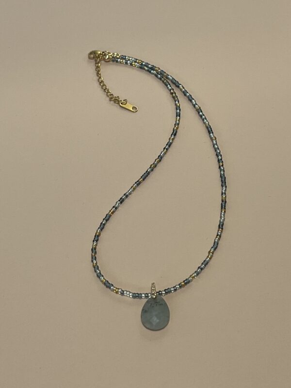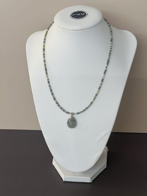 ✔ שרשרת חרוזים דקה עם תליון טיפה לברדורייט – אבן לברדורייט טבעית – ידועה בברק הקסום שלה ובתחושת ההגנה שהיא מעניקה