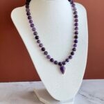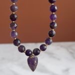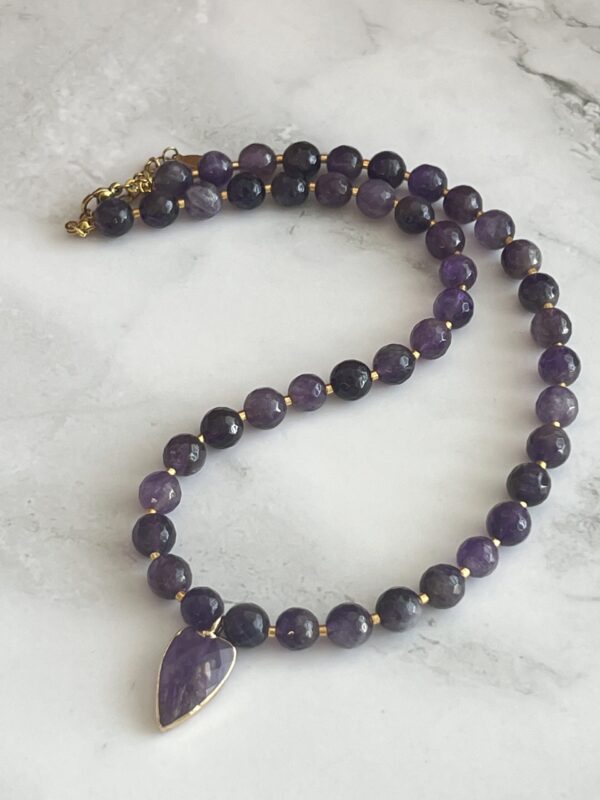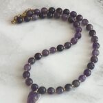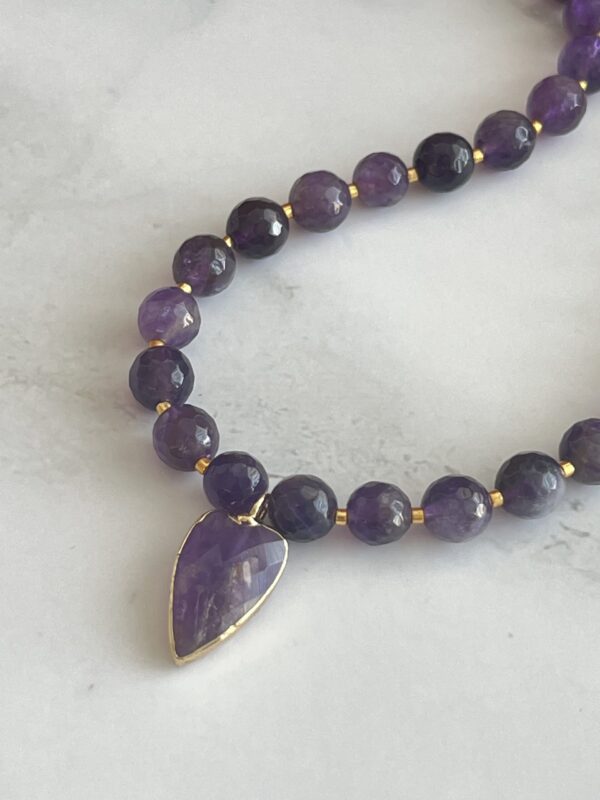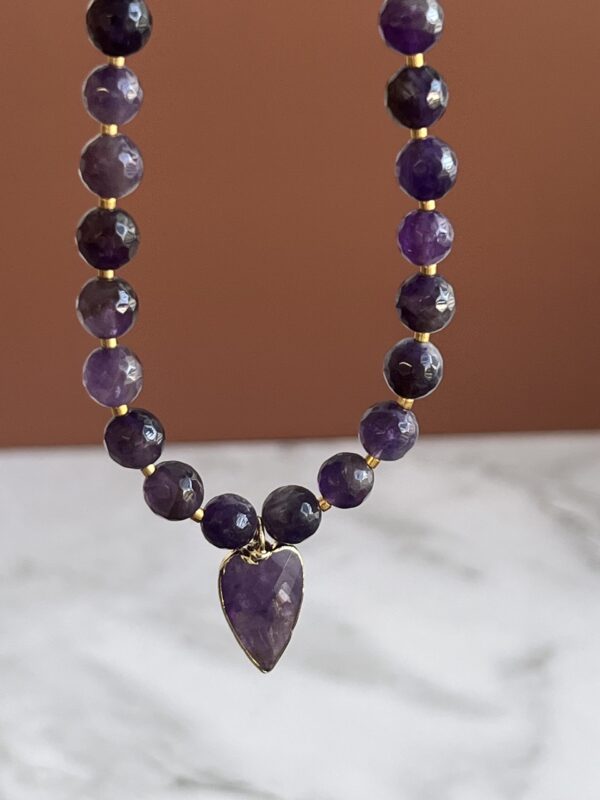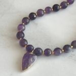 שרשרת גוונים עשויה חרוזי אמטיסט ותליון לב אמטיסט סגול.
