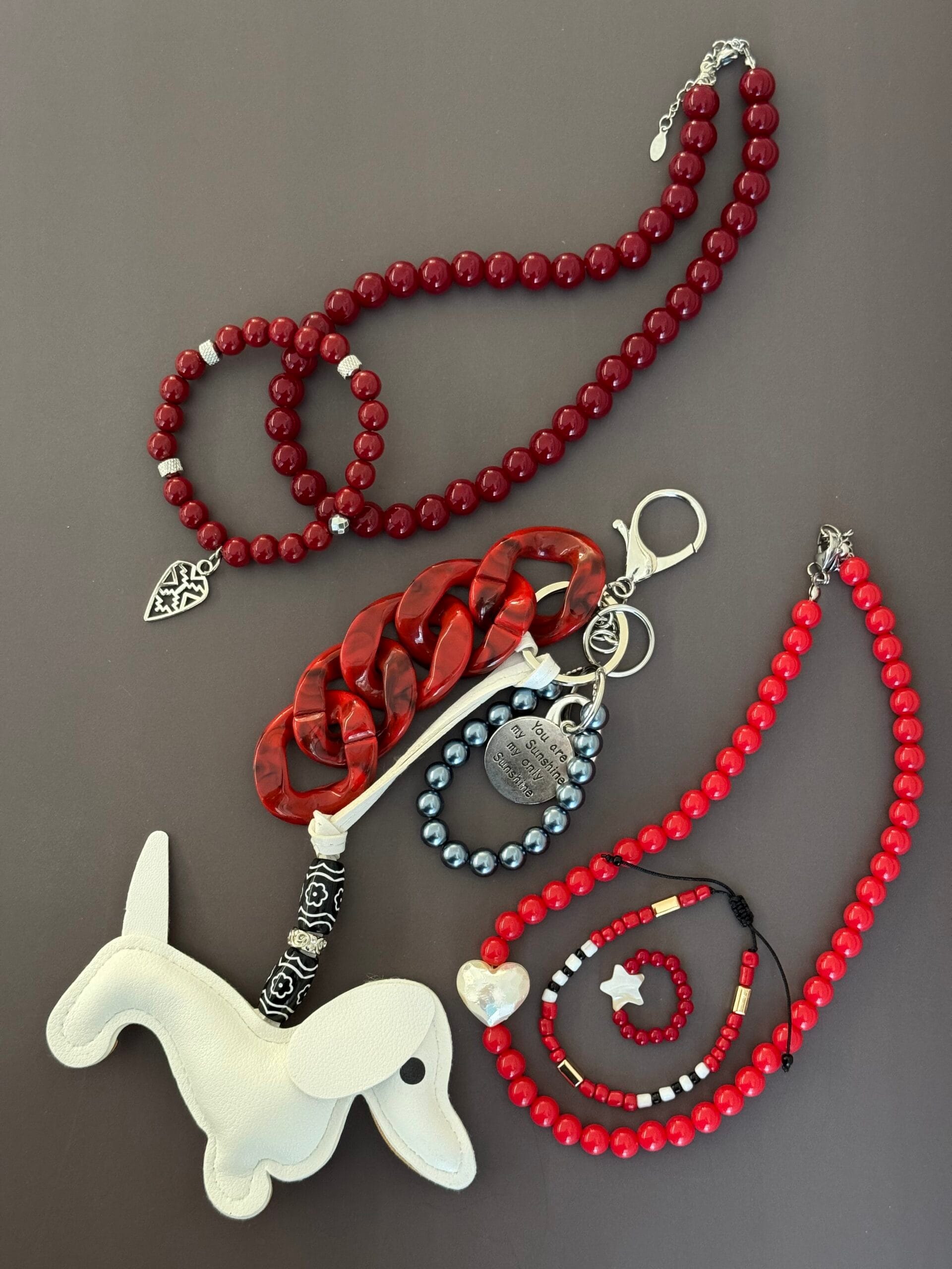 • הכל מתואם: שרשראות, צמידים, עגילים ומחזיק מפתחות צ’ארמס, כולם מתכתבים זה עם זה באותה פלטת צבעים.