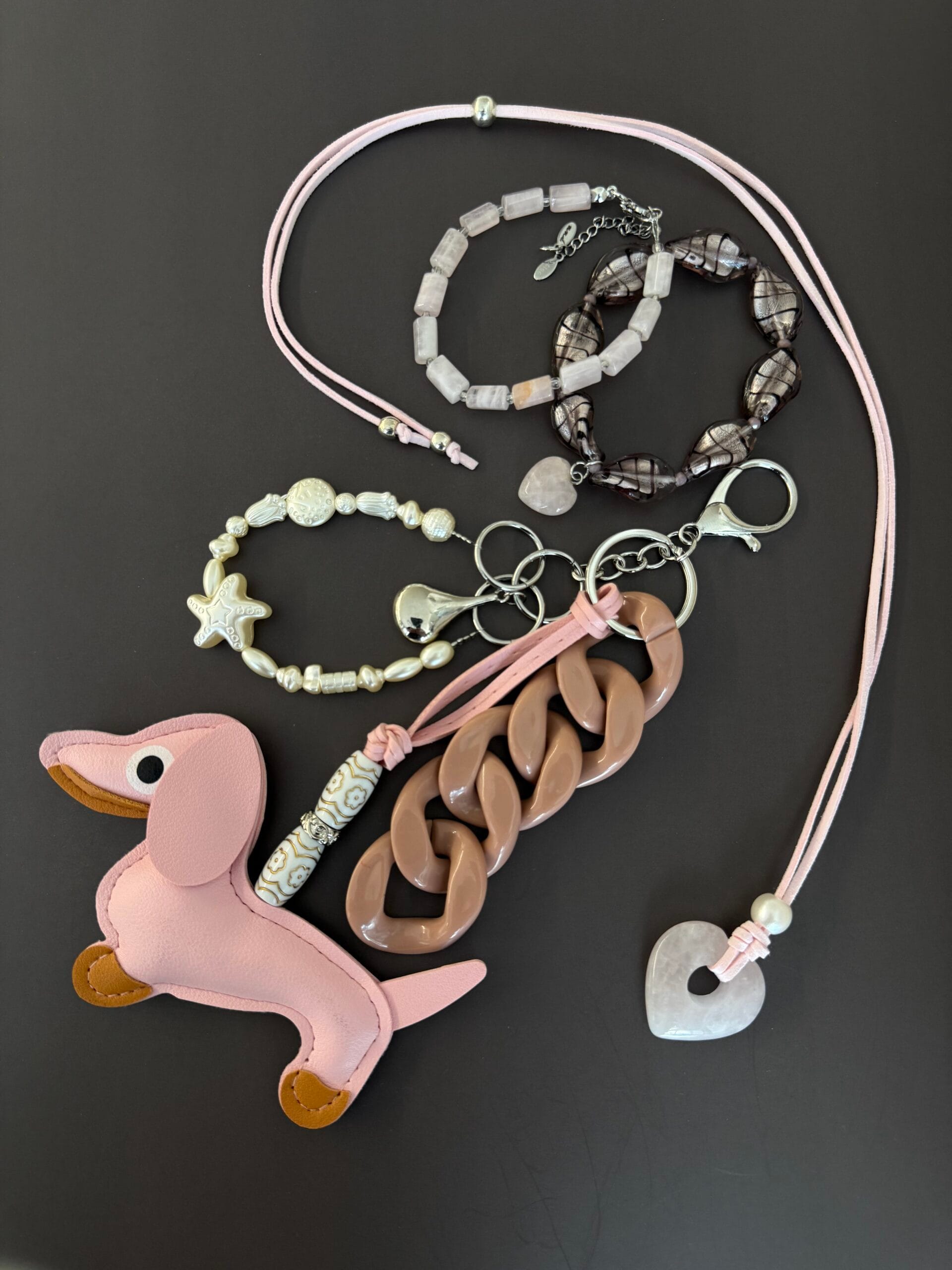 • הכל מתואם: שרשראות, צמידים, עגילים ומחזיק מפתחות צ’ארמס, כולם מתכתבים זה עם זה באותה פלטת צבעים.