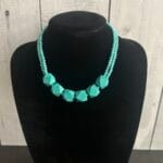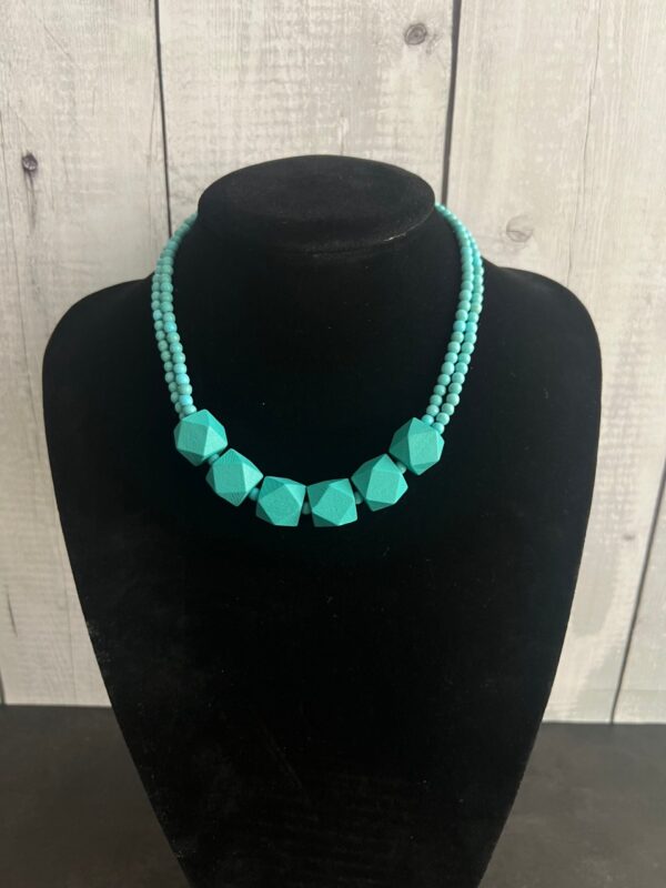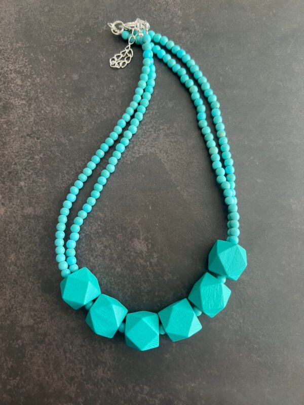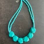 שרשרת חרוזי עץ וחרוזי פלסטיק בטורקיז.
