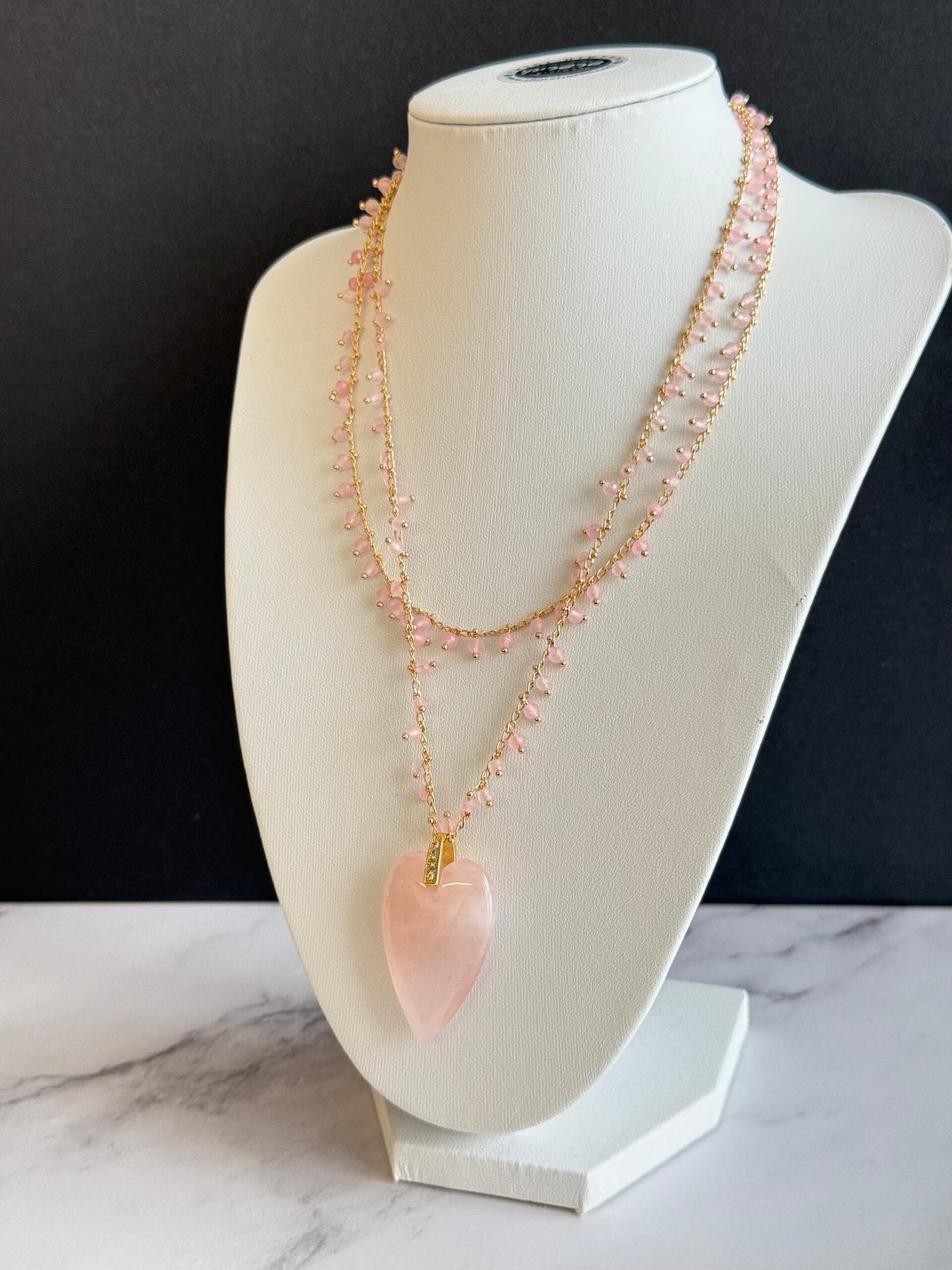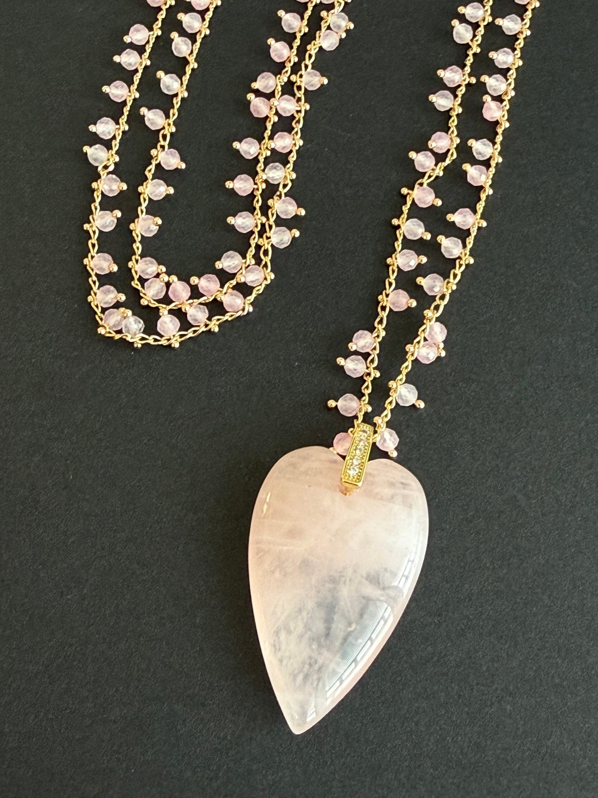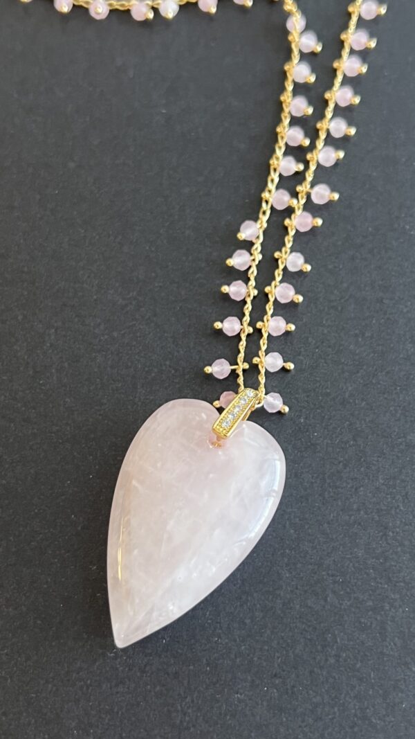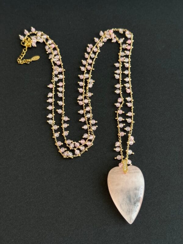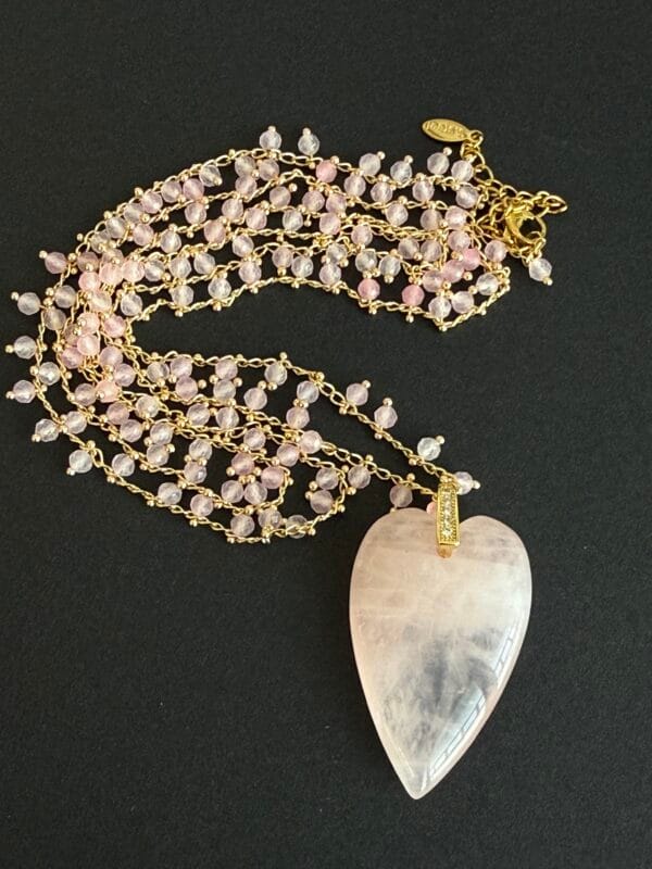 שרשרת ארוכה לב בוהו ורוד