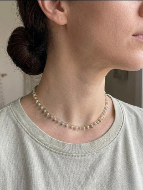 שרשרת עדינה שזורה באבני חן קטנות לאורכה.