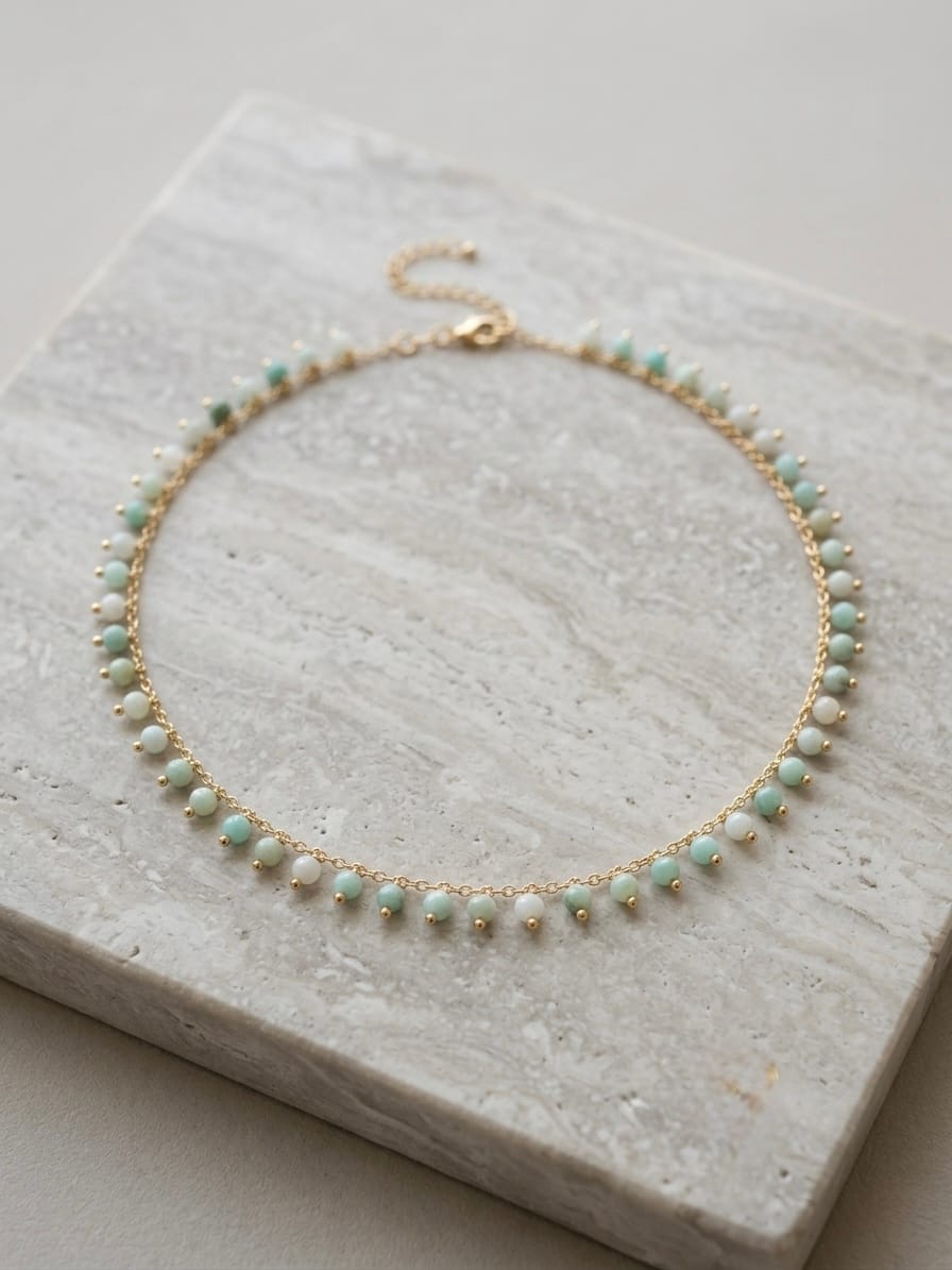 ֿכל אבן בעלת גוון וטקסטורה משלה, היא תתאים לטרנד השכבות (layering) מושלם לענוד אותו לבד או לשלב עם שרשראות נוספות.