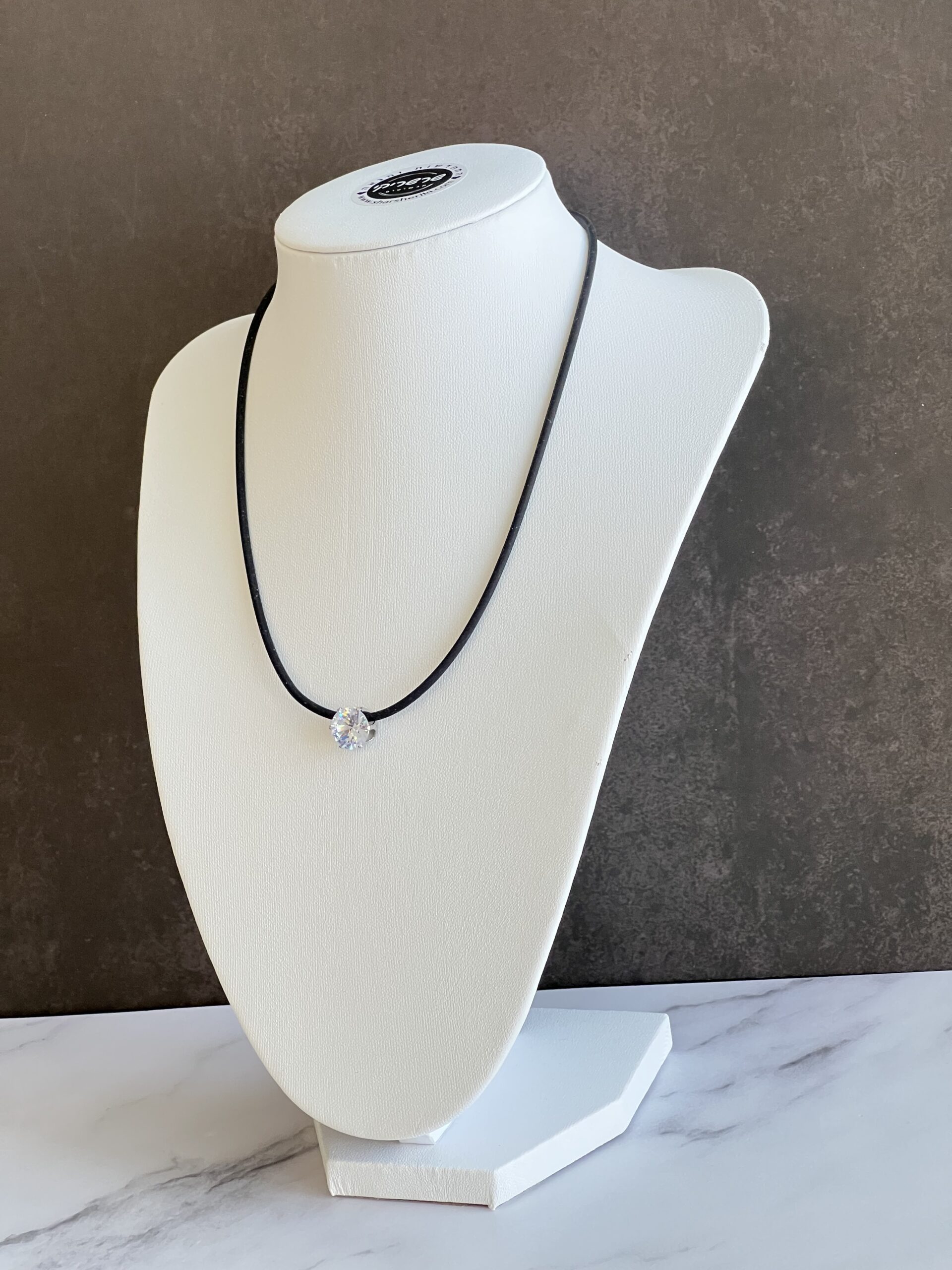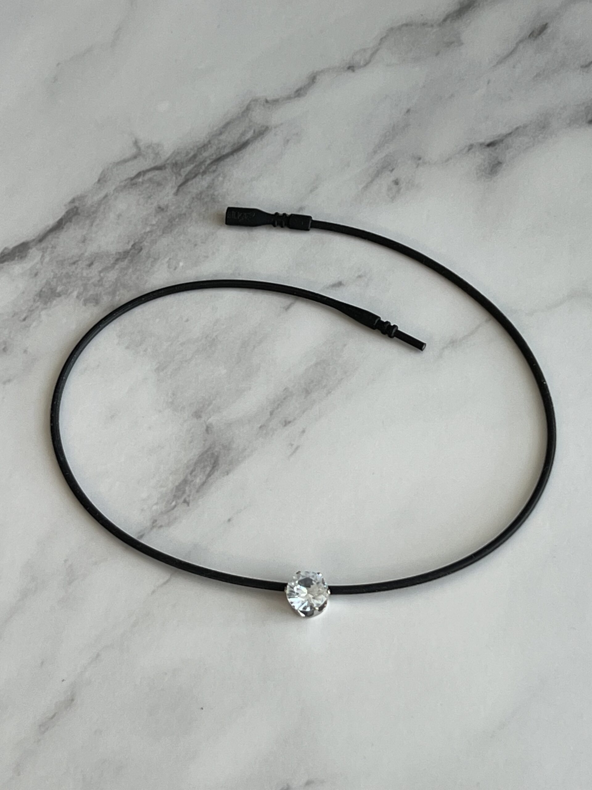 שרשרת עשויה חוט גומי שחור קלה לפתיחה וסגירה עם חרוז זירקון מנצנץ.