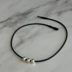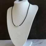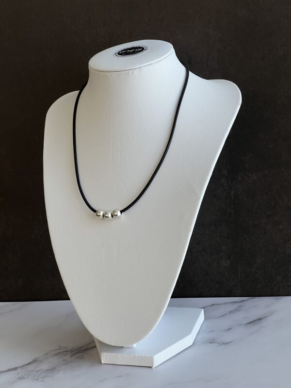 שרשרת עשויה חוט גומי שחור קלה לפתיחה וסגירה עם חרוזים כסופים אל חלד.