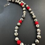 שרשרת אבני ג׳אספר דלמטי ייחודית בשילוב חרוזים אדומים להדגשת הנוכחות. השרשרת משדרת נועזות ואופנתיות, ומתאימה להוספת טוויסט מעניין לכל לוק.