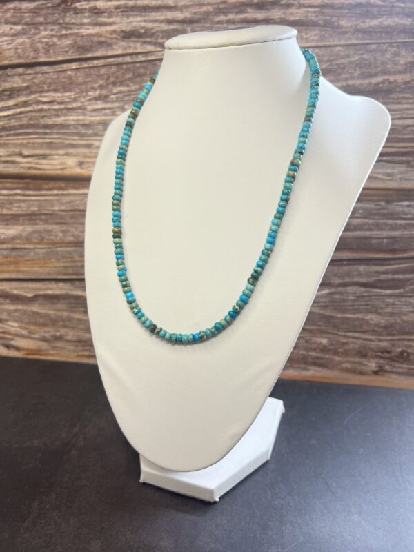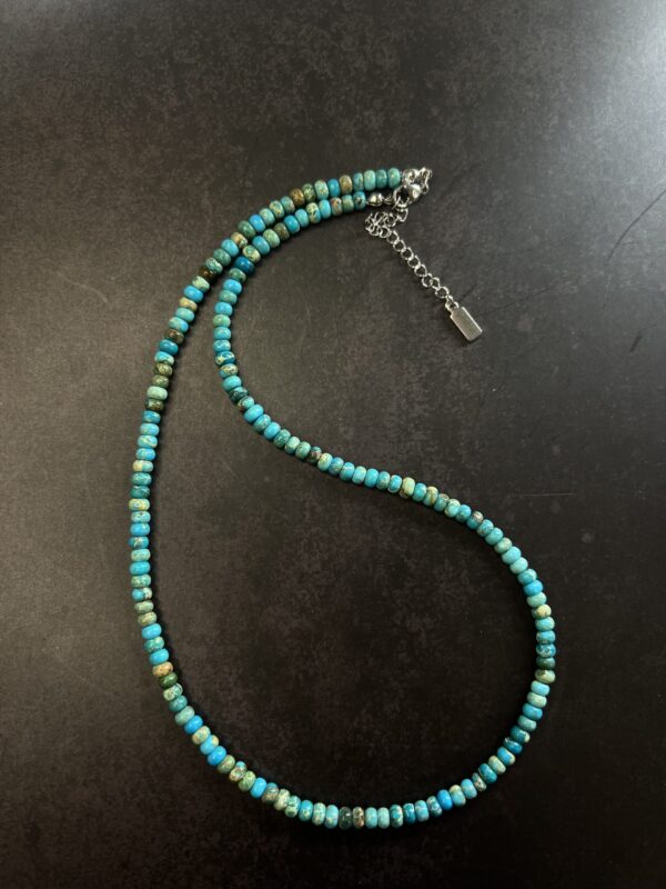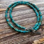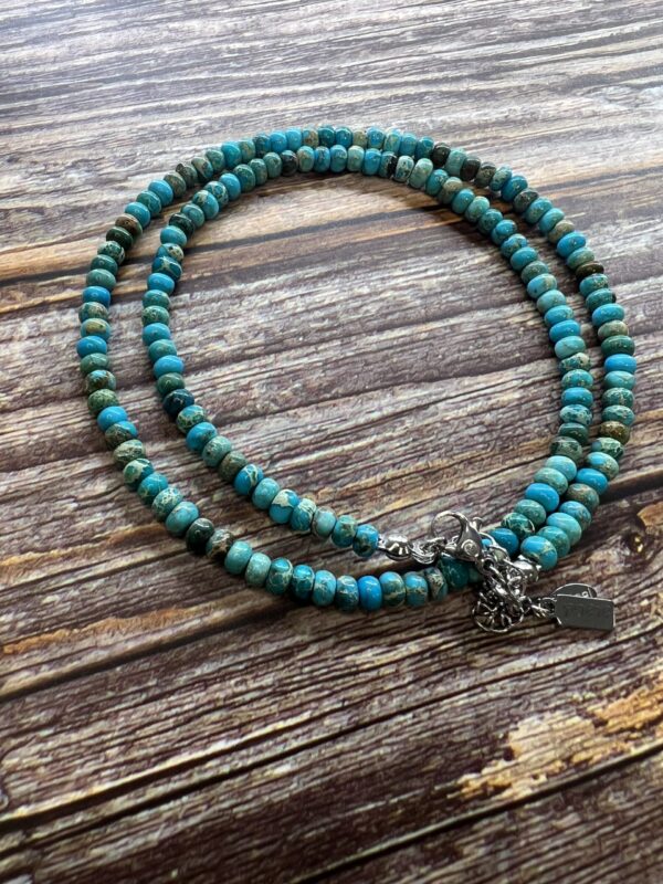 שרשרת עשויה חרוזי ג׳אספר שטוחים בגווני טורקיז .