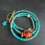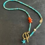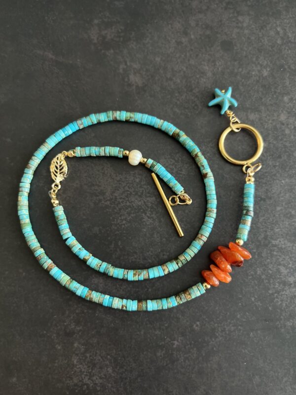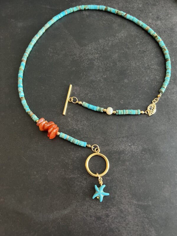 לשרשרת סגירה קדמית נוח ה, עם תליון כוכב ים בגוון טורקיז.