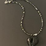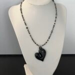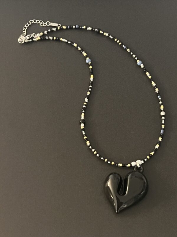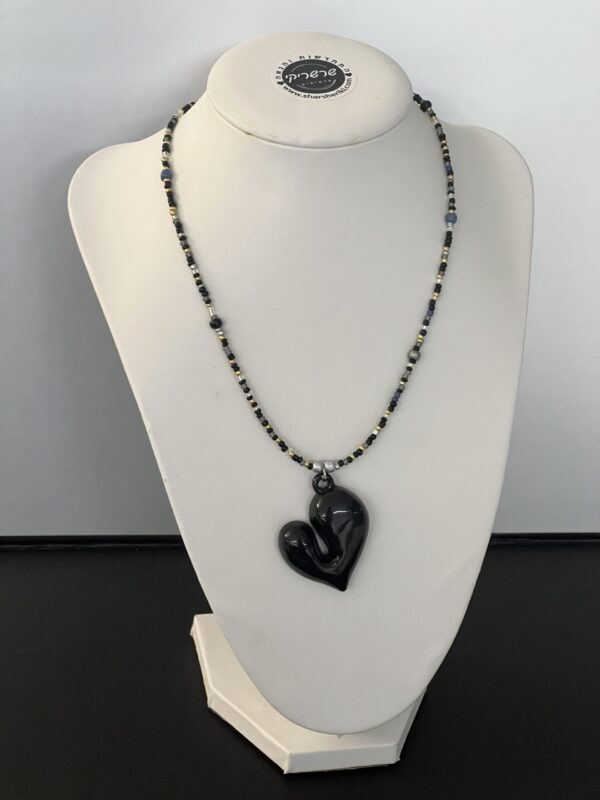 שרשרת תערובת חרוזים יפניים בגווני שחור ותליון לב אקריל בשחור