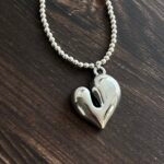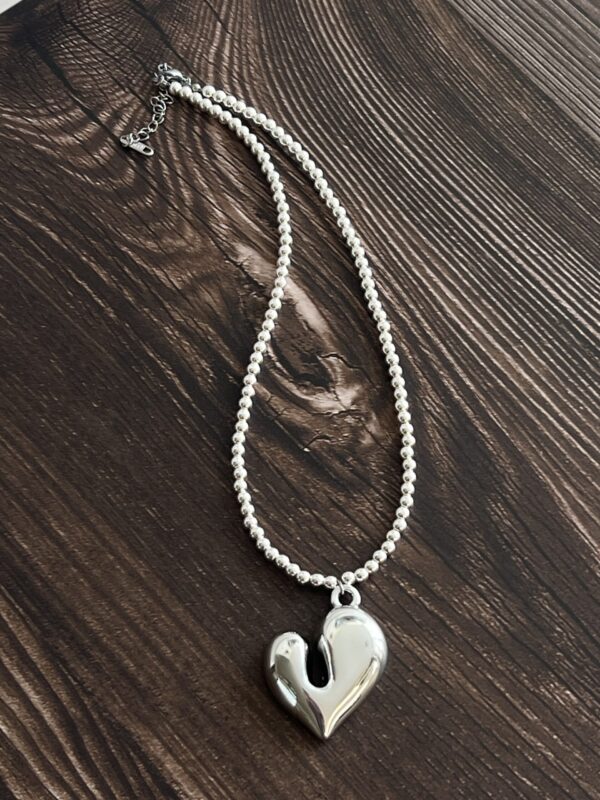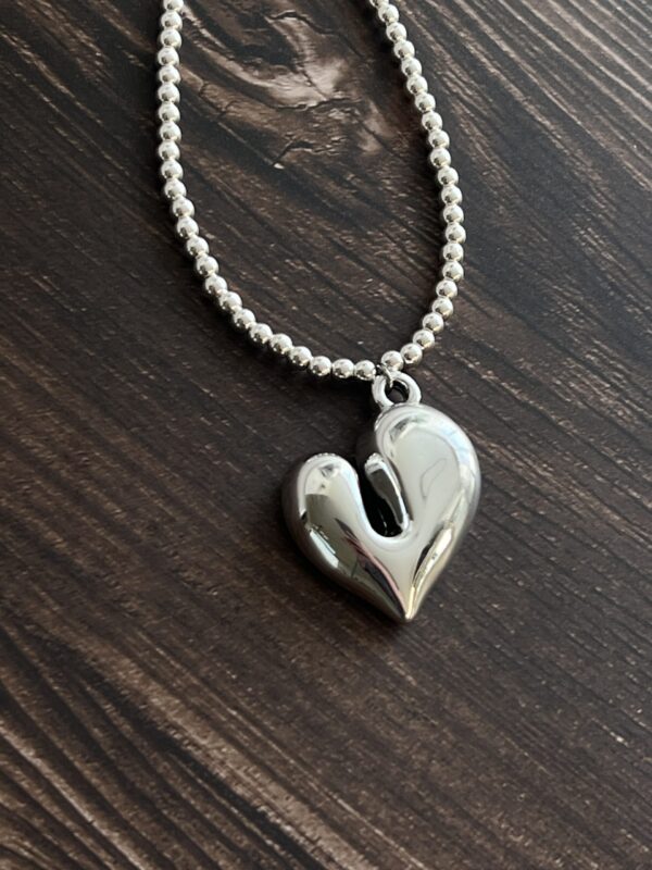 שרשרת כדורים מבריקה עשויה המטייט ותליון לב  אקריל כסופים.