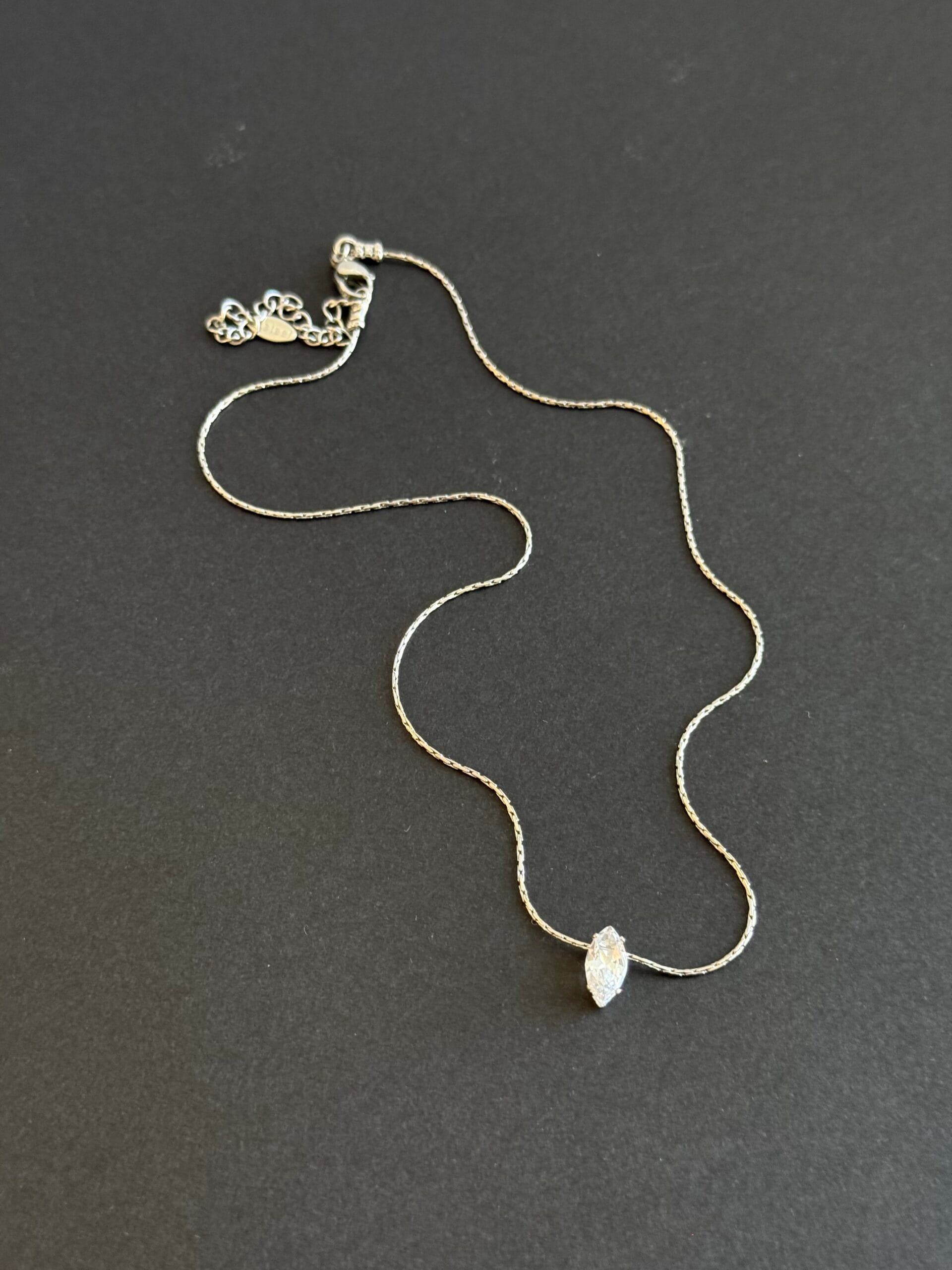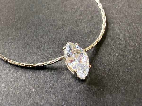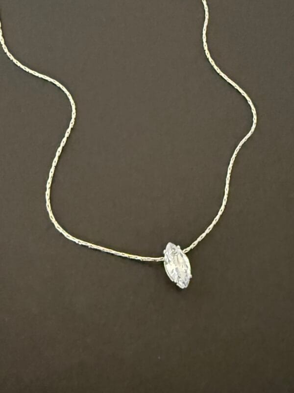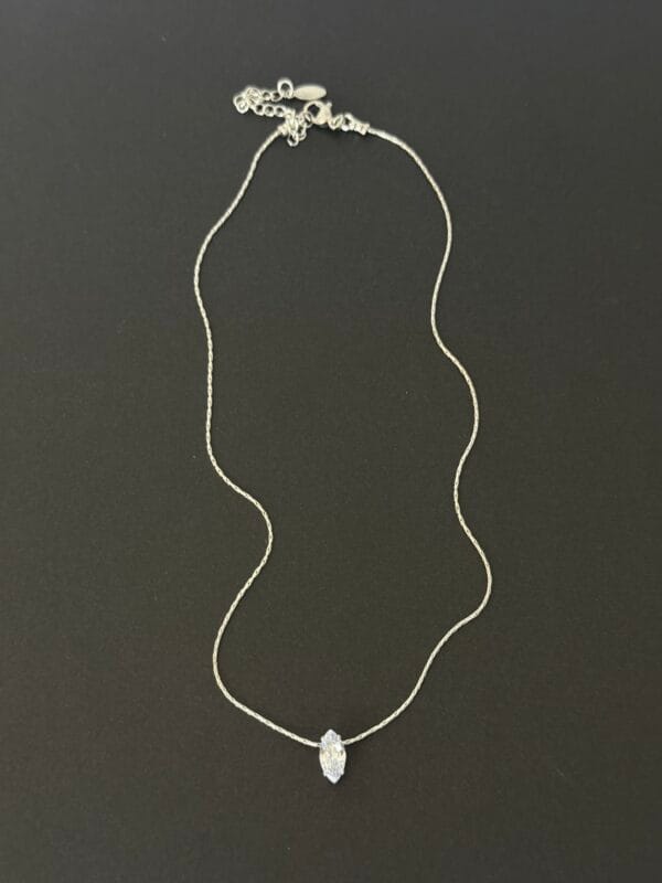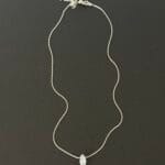 שרשרת סנייק דקה אל חלד עם תליון זירקון בצורת טיפה. השרשרת תשב יחסית צמוד לצוואר, וניתן להאריך אותה באמצעות המאריך בהתאם לאורך הרצוי.