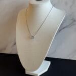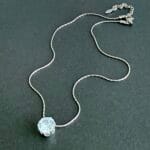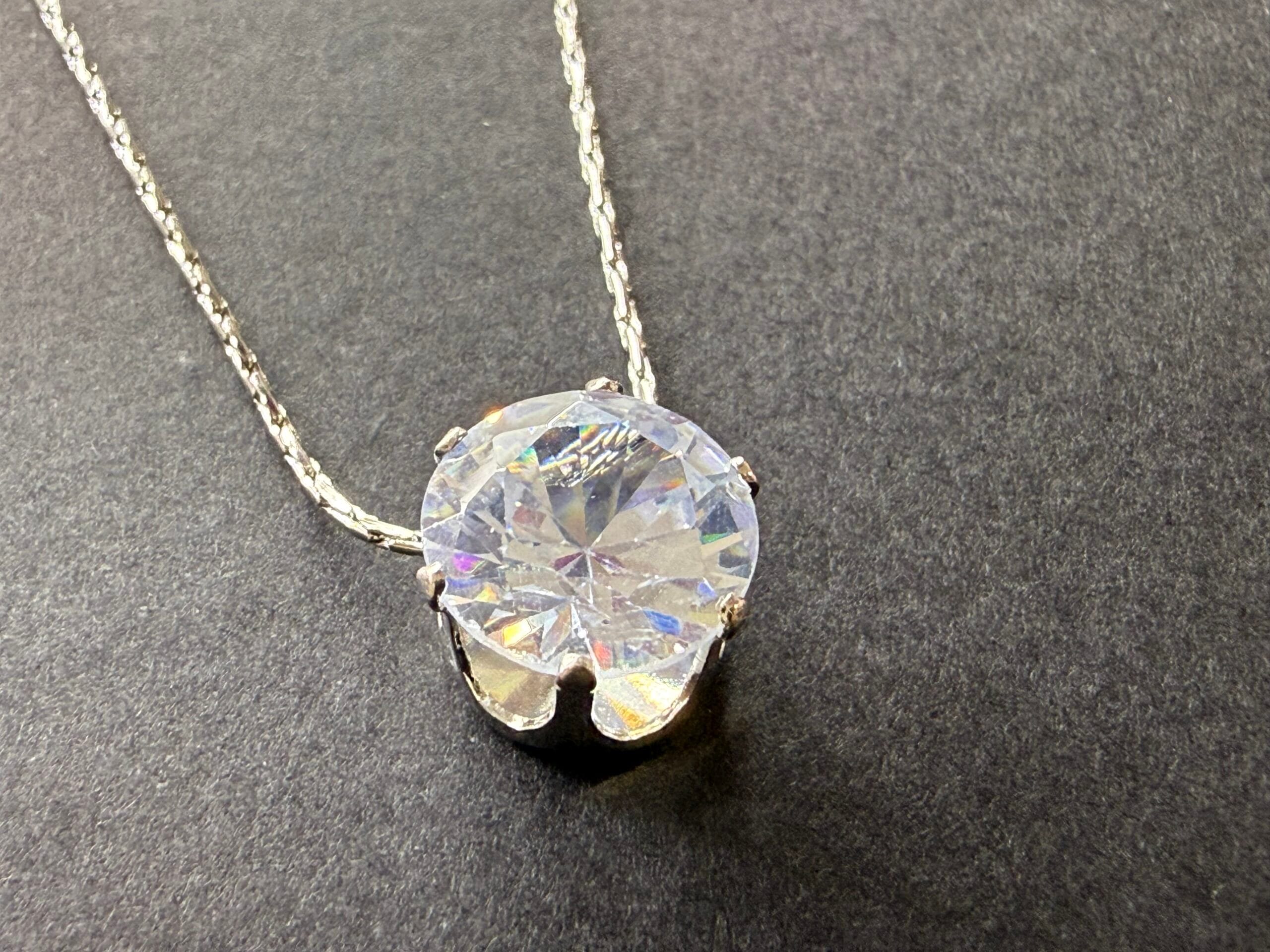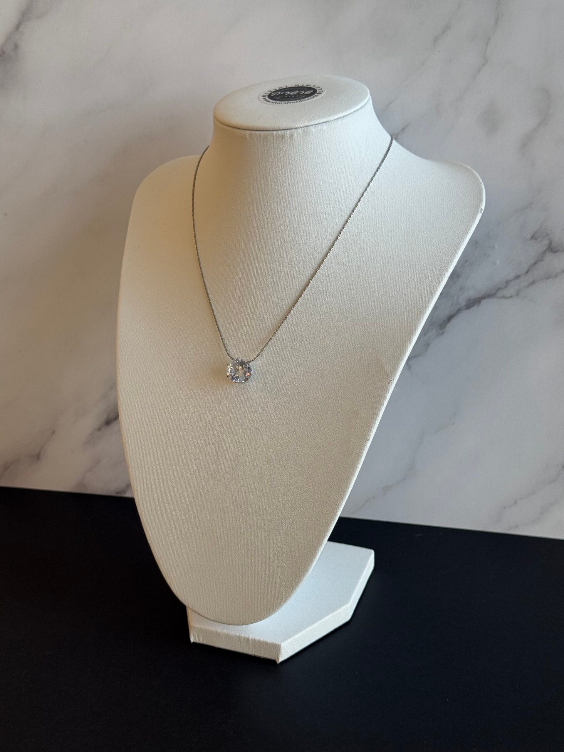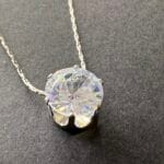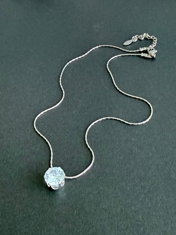 שרשרת סנייק דקה אל חלד עם תליון זירקון עגול. השרשרת תשב יחסית צמוד לצוואר, וניתן להאריך אותה באמצעות המאריך בהתאם לאורך הרצוי.