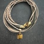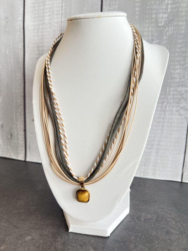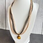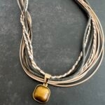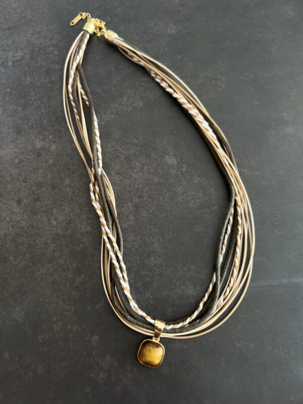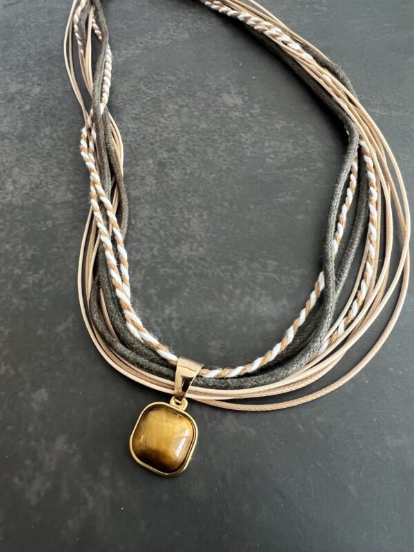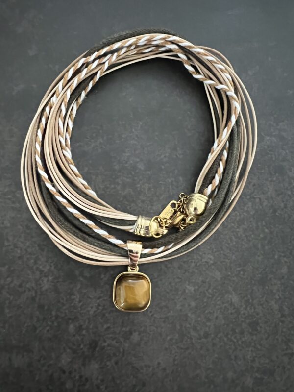 שרשרת חבלים בגווני חום עם תליון עין הנמר.