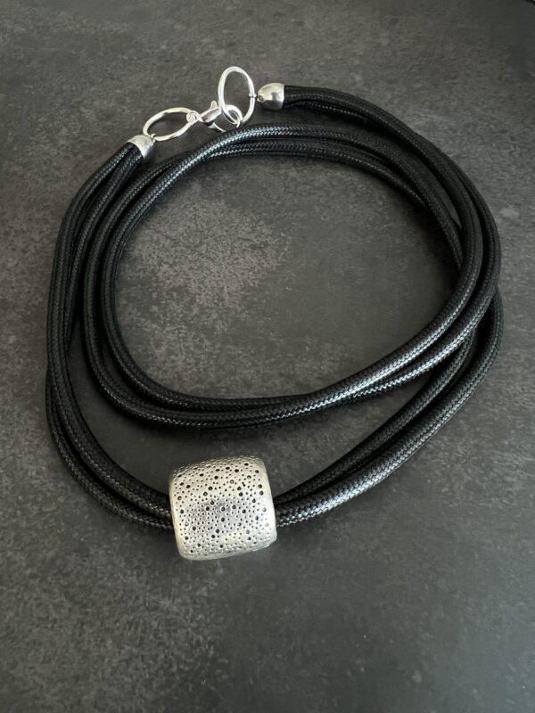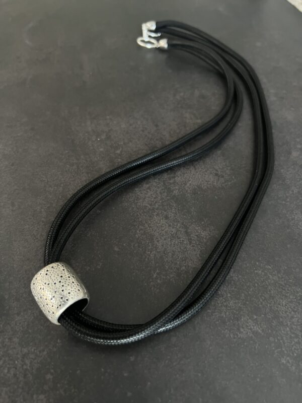בשרשרת משולב חרוז צילינדר כסוף ומלא נוכחות שיחמיא לכל לוק.