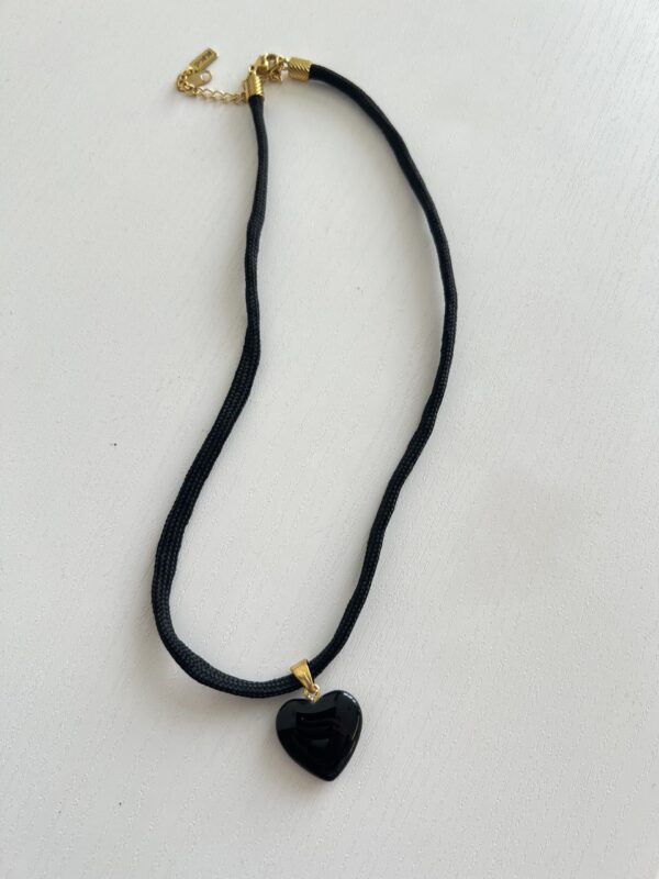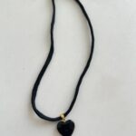 שרשרת עשויה חבל שחור ותליון לב שחור.