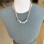 שרשרת בוהו-שיק שמשלבת גווני מנטה מרעננים, חרוזי קרמיקה וטקסטורות שפשוט אי אפשר להוריד מהן את העיניים. מושלמת מעל טי-שירט חלקה או שמלת ערב קלילה.