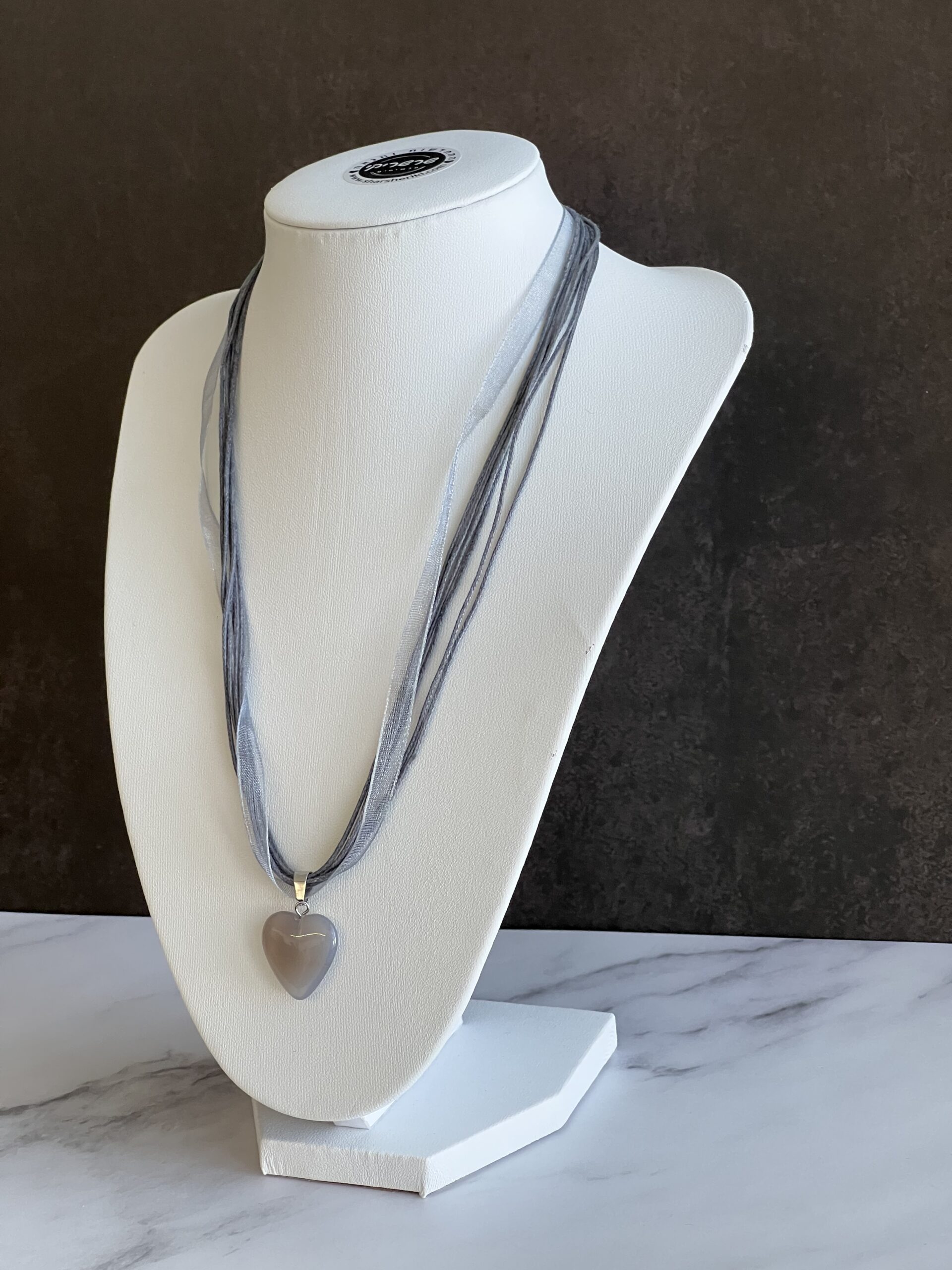 שרשרת חוטים, עדינה בעיצוב רב-שכבתי, בשילוב תליון בצורת לב עשוי אבן חן חלקה ובעלת ברק טבעי. סגירה מתכווננת מאפשרת התאמה אישית לנוחות מירבית. שילוב של פשטות ורומנטיקה קלאסית . תכשיט על-זמני המתאים לכל סגנון לבוש.