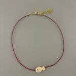 שרשרת צ'וקר עשויה מחוט סאטן בגוון בורדו עם תליון דג בגוון בז'.