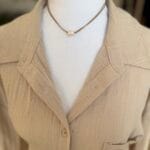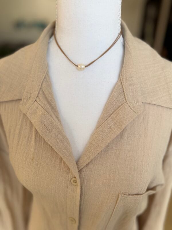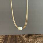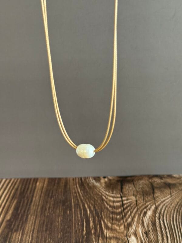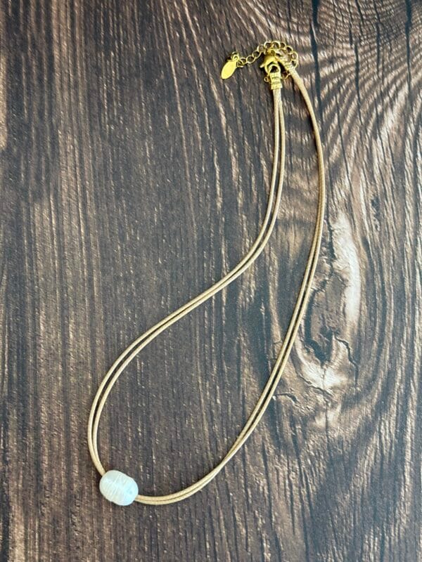 שרשרת חוט דק כפול, בגוון חום בז’ ועליו פנינה מתורבתת .