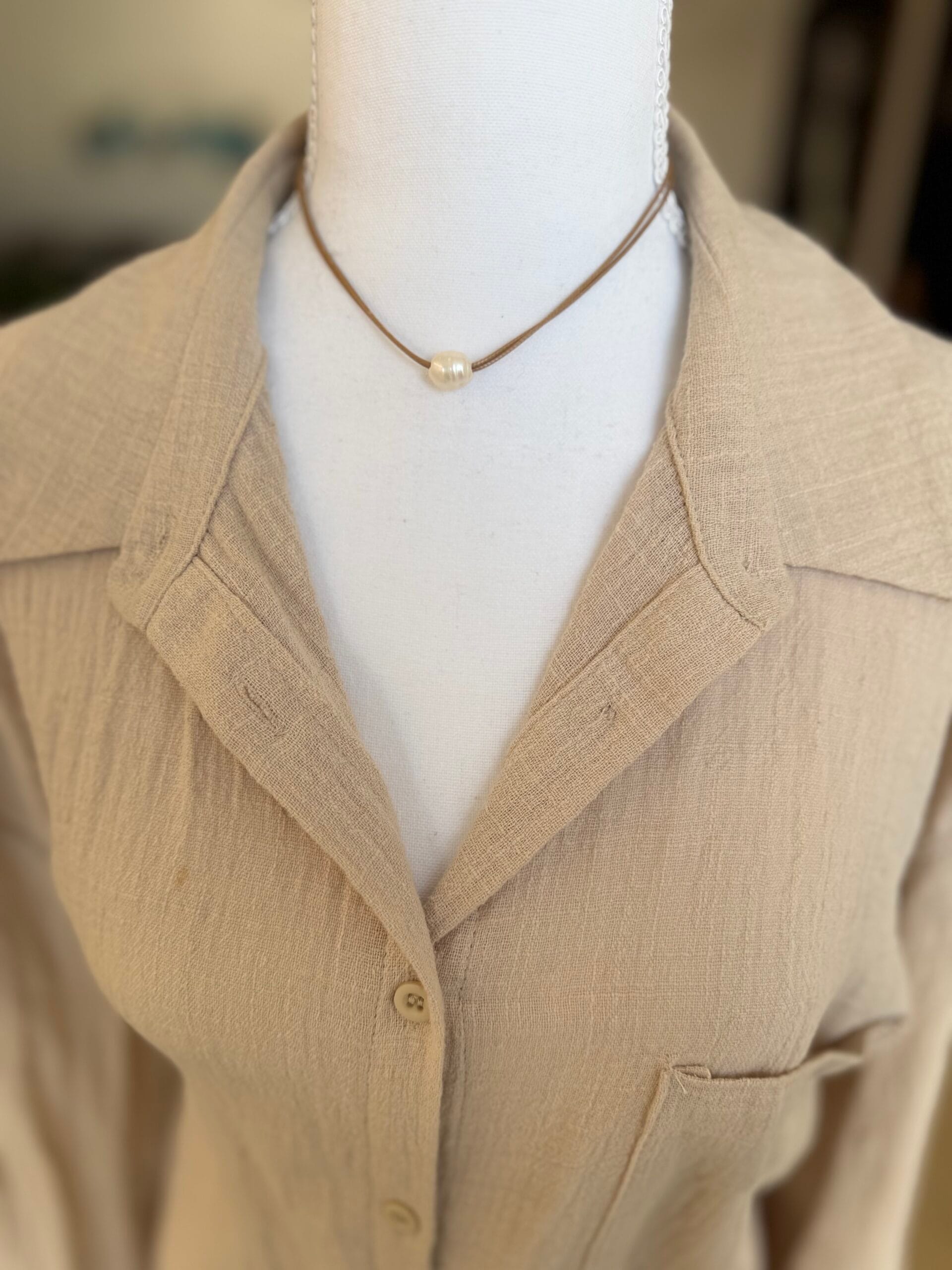 שרשרת חוט חום פנינה - שרשריקי sharsheriki
